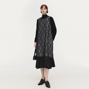 新款 AUM噢姆2026年春季 肌理提花绒背心连衣裙黑色长裙 FaFa裙