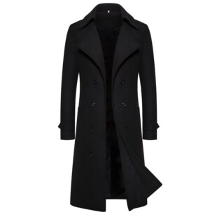 帅气中长款 毛呢大衣修身 风衣男土尼子加棉加厚外套潮 跨境男士 新品