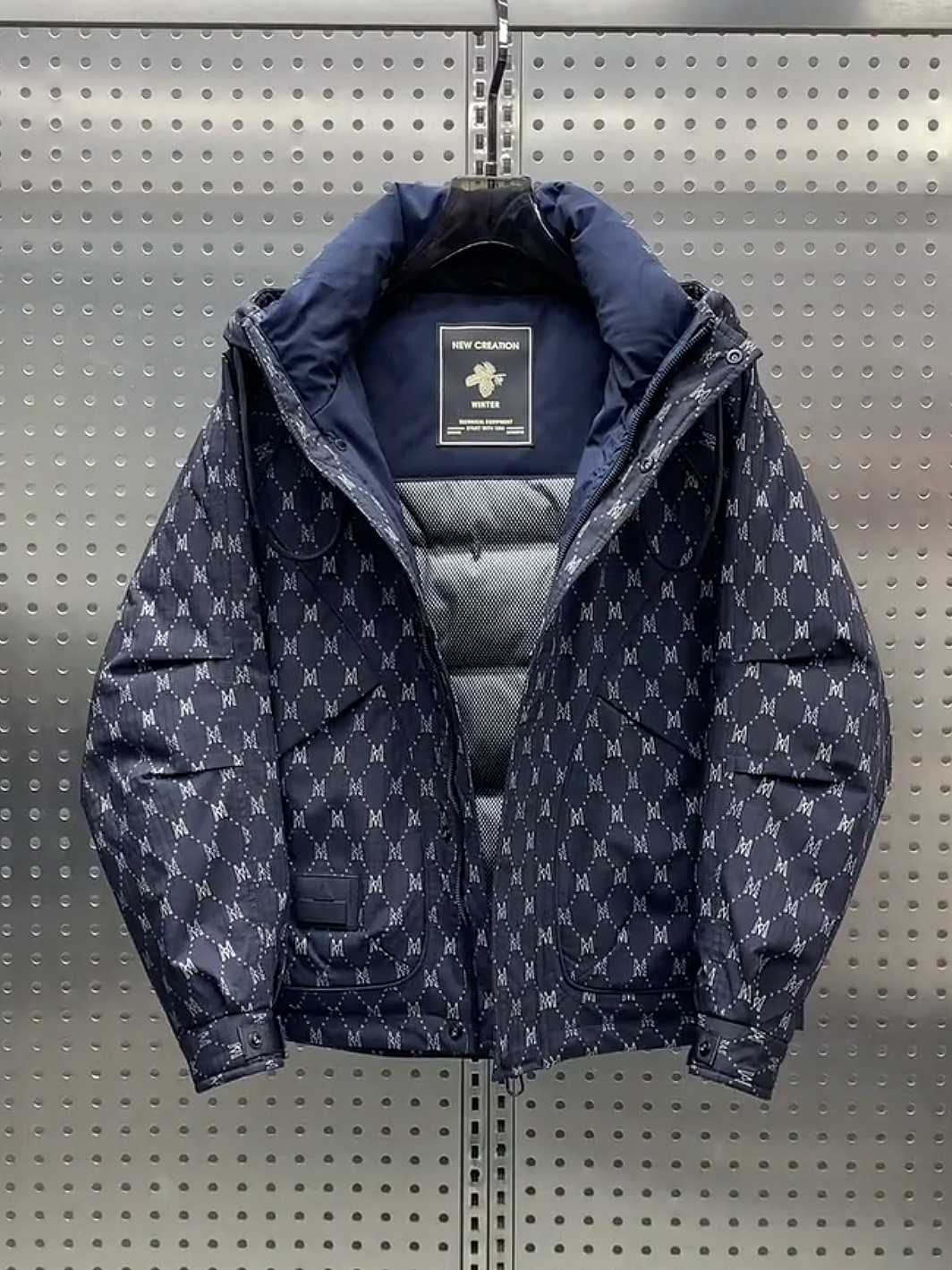 棉衣外套简约休闲宽松棉袄上衣 印花连帽男士 2025冬季 加厚棉服时尚