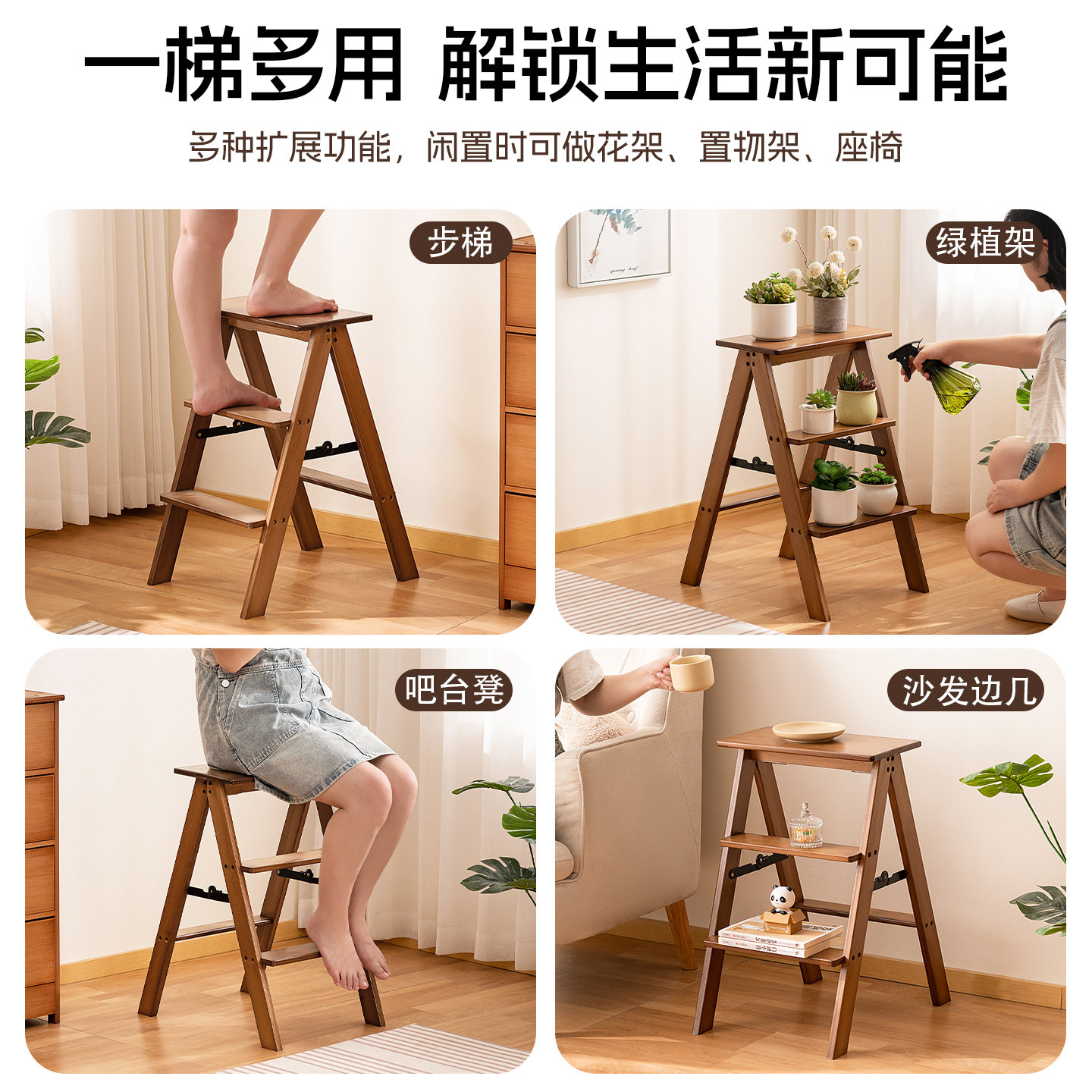 奥鹏锁扣梯子家用折叠伸缩梯子加厚楼梯人字室内多功能三步小梯凳