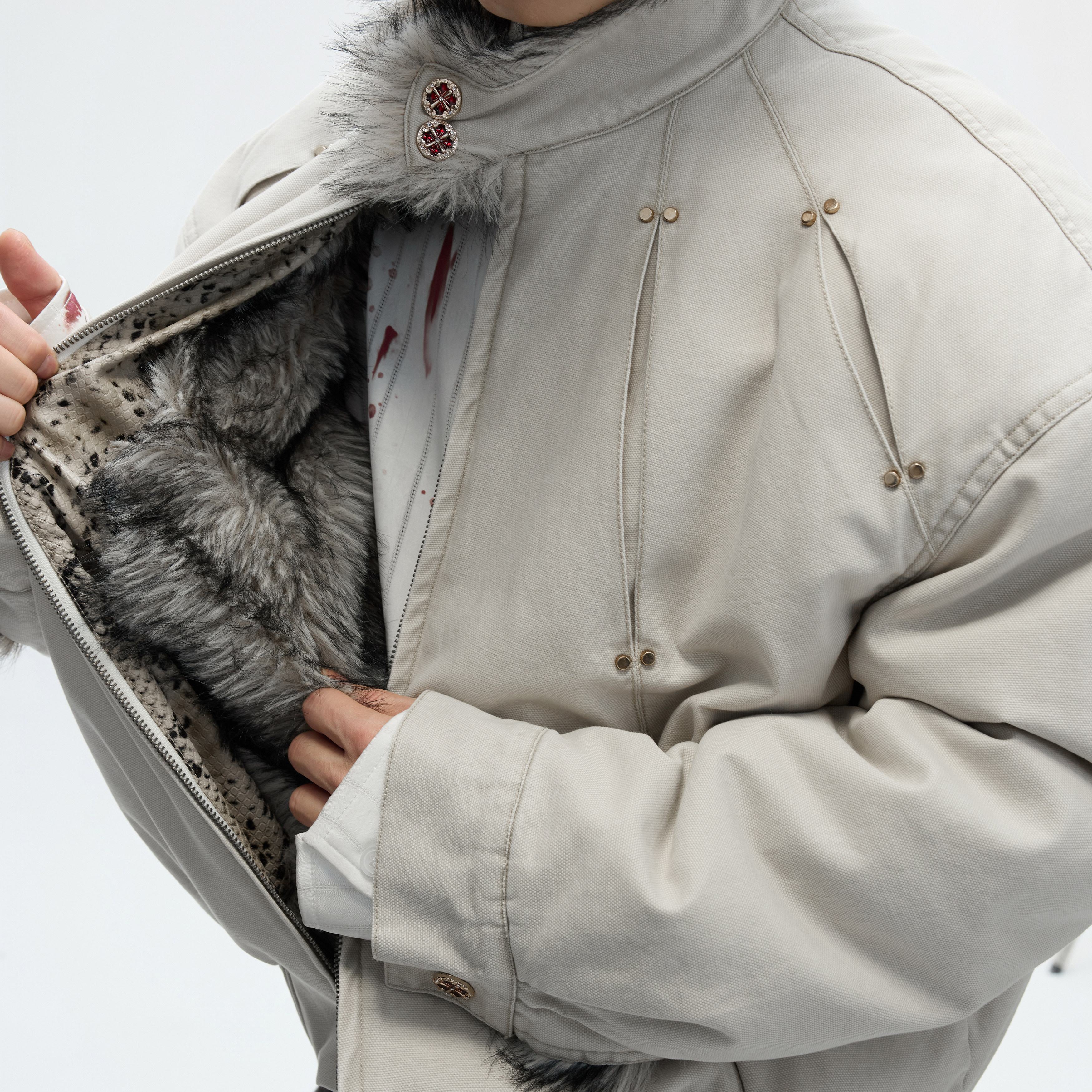 ArguE CulturE狼王银狐二代水洗帆布重磅狼毛座山雕加厚棉服外套