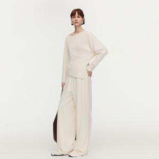 一字领针织磨毛上衣阔腿裤 新款 AUM噢姆2026年春季 女 轻松套装