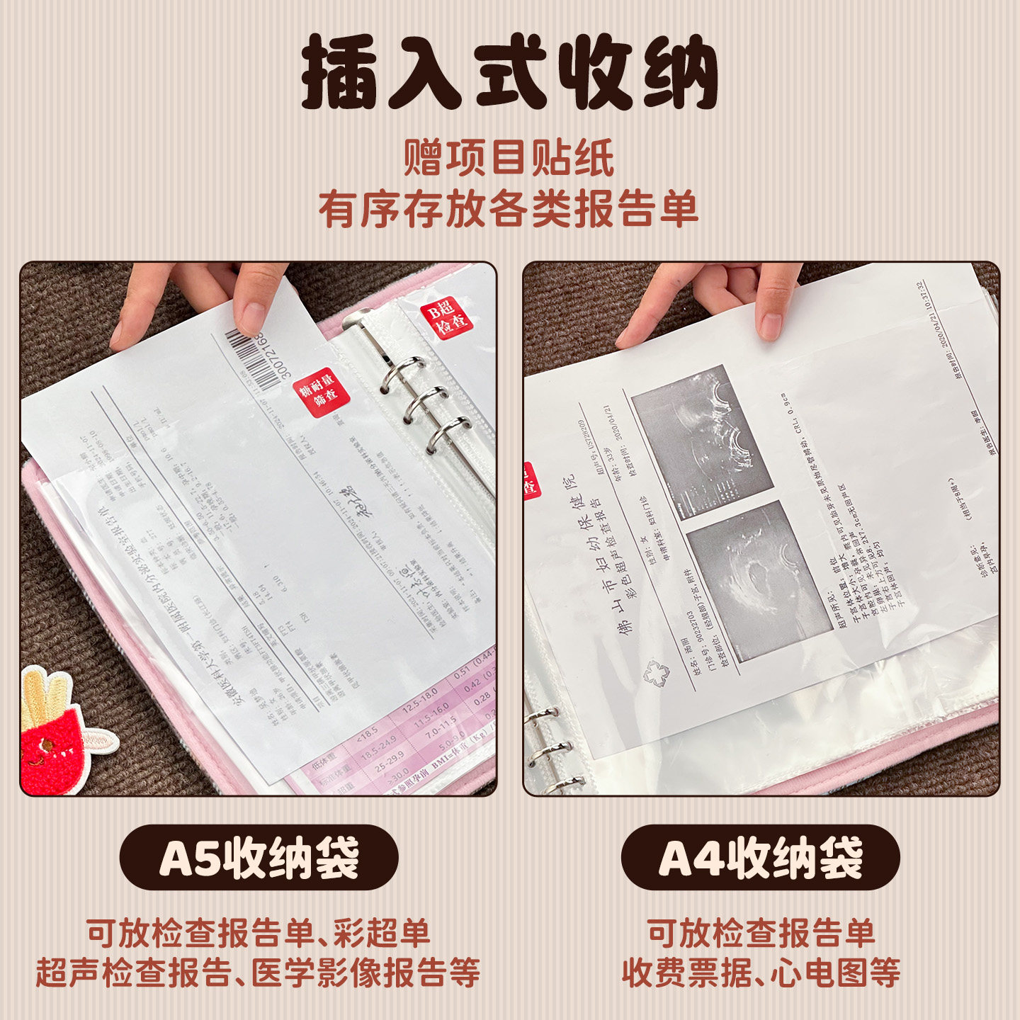 三年二班 收纳袋a4产检报告单马宝宝检查单怀孕记录册孕妈孕期档案册活页资料册 复古孕检收纳册折叠便携式