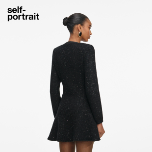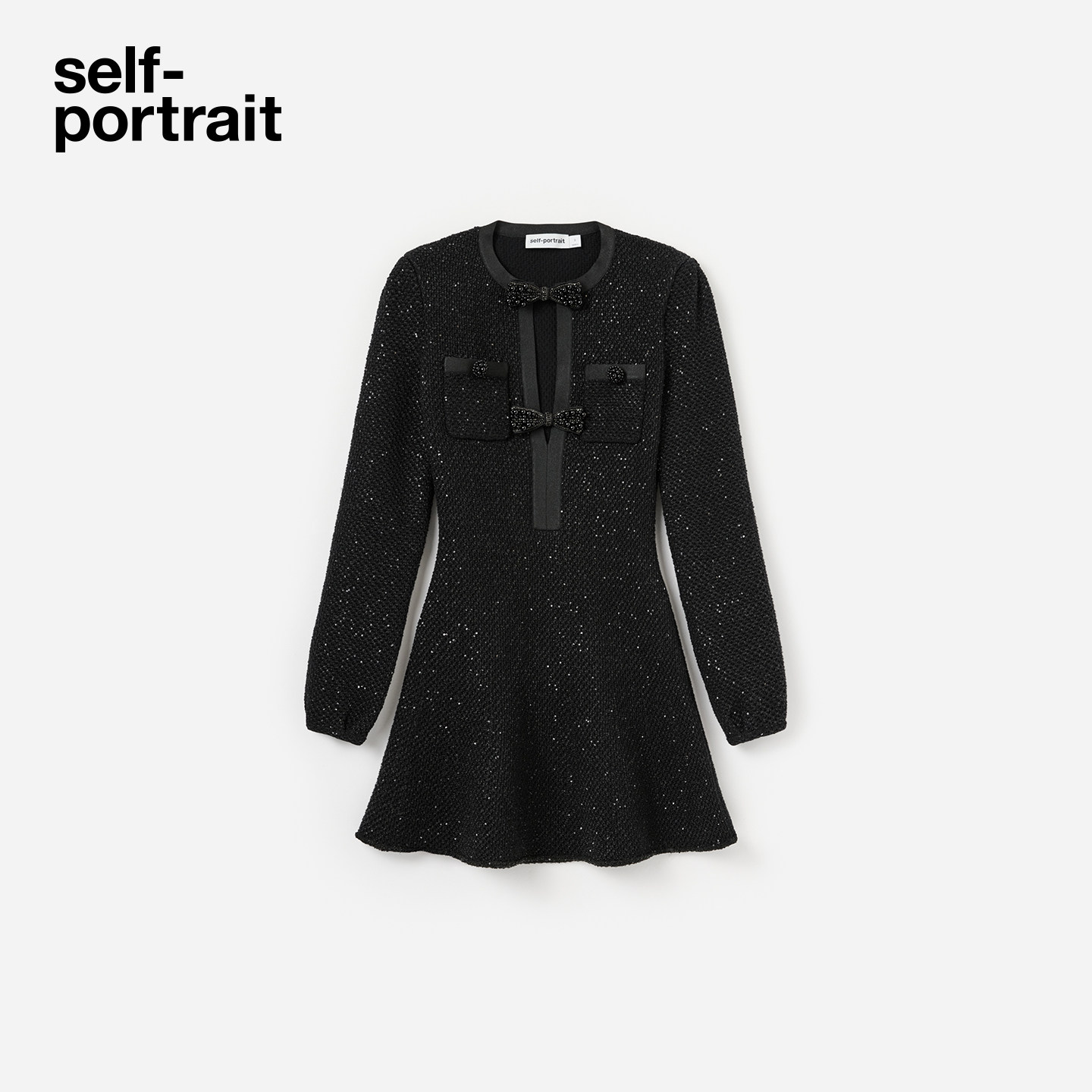 黑气质长袖 self 经典 2026早春新款 亮片针织连衣裙短裙 portrait