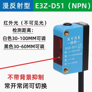 T61 D62漫反射对射型 D61 方形激光背景抑制光电开关传感器E3Z