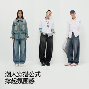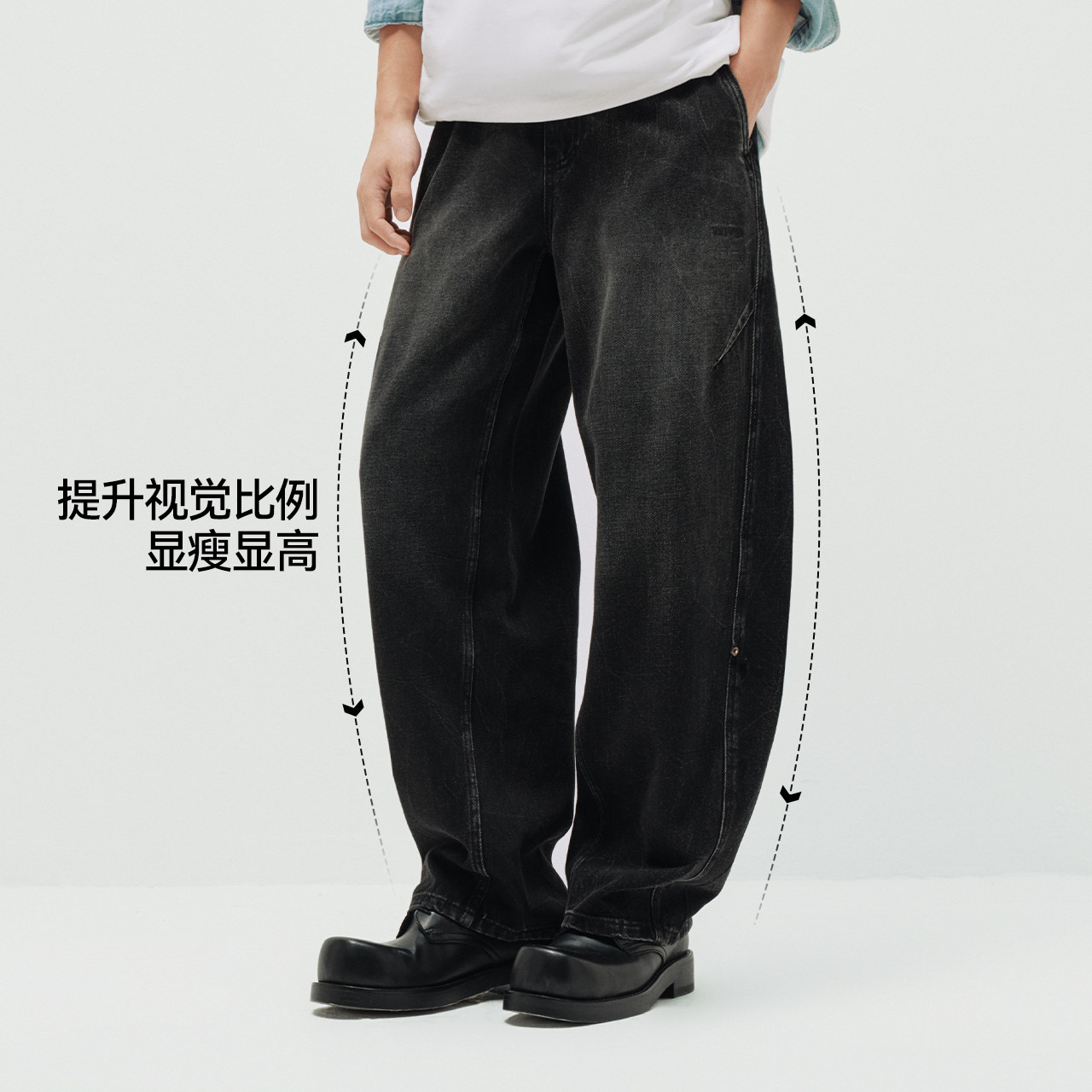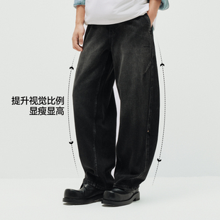 森马牛仔长裤 时尚 男春季 子2026新款 潮流 宽松弧形弯刀裤 商场同款