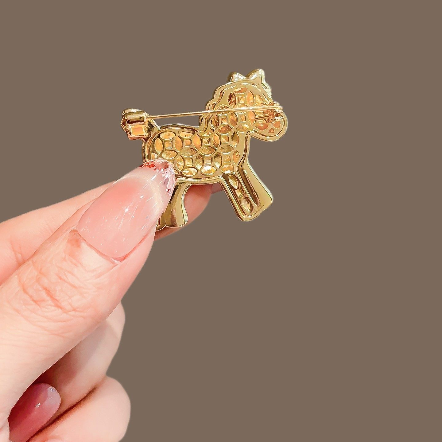 金色贝壳小马驹胸针配大衣女款 高档奢华气质本命年别针高级感轻奢