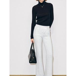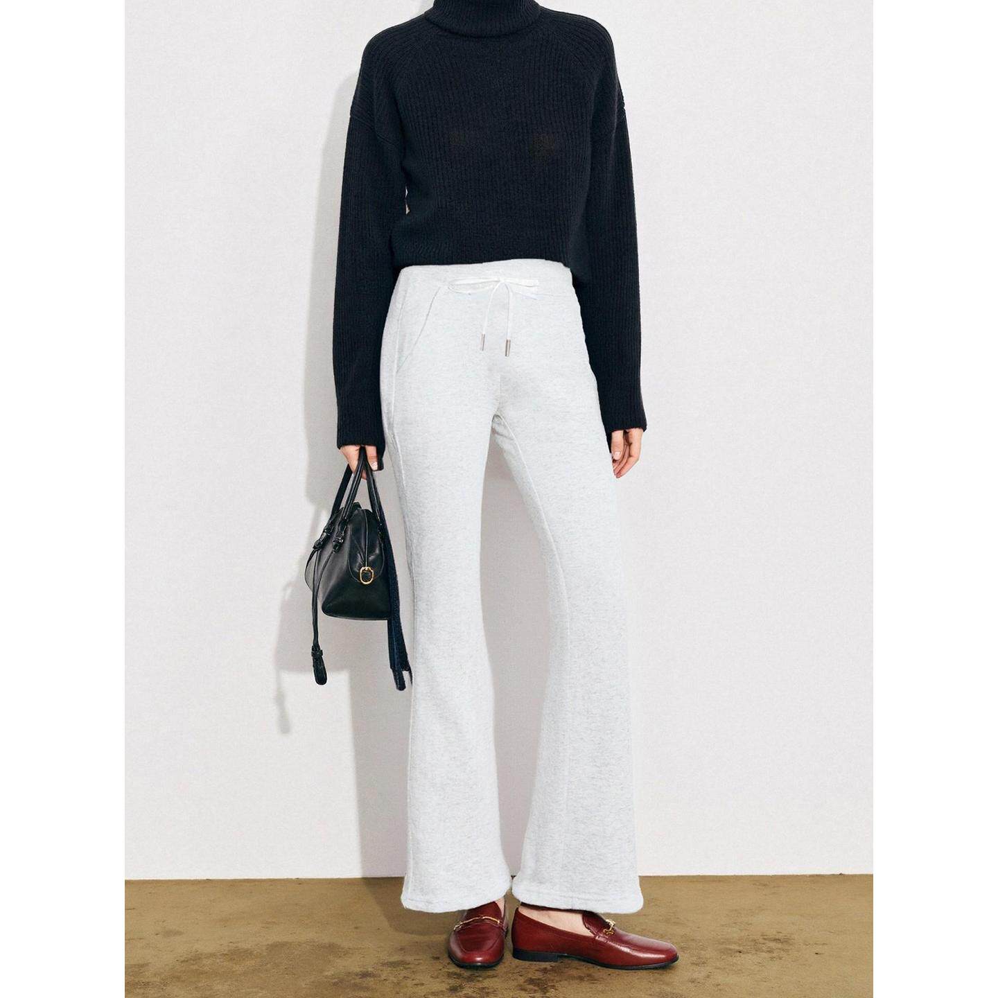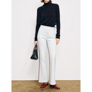 加绒加厚松紧高腰卫裤 Basic 女士冬季 百家好白色微喇运动裤 House