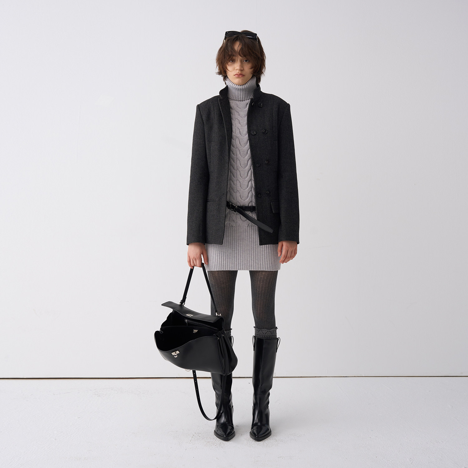 慵懒风双面羊毛大衣女中长款 灰色毛呢外套高级感