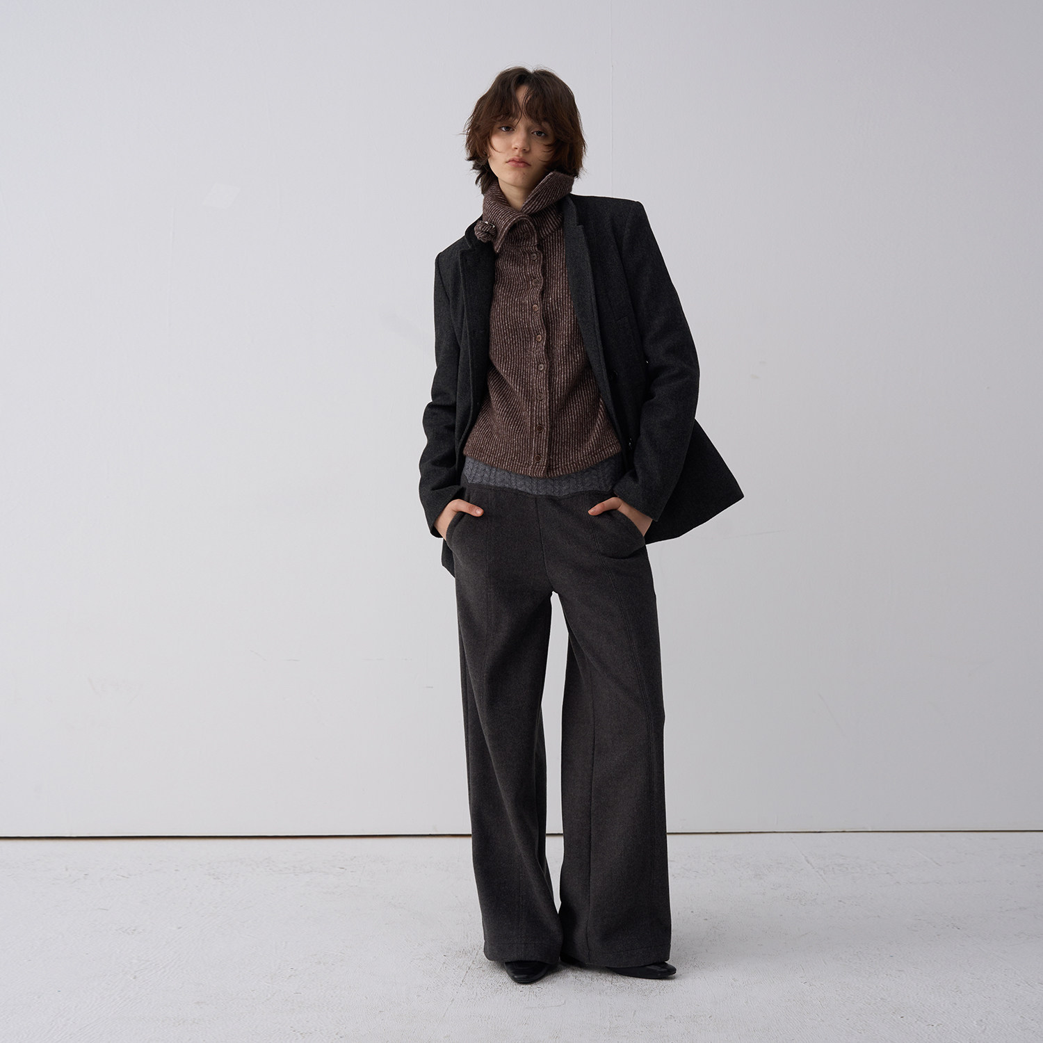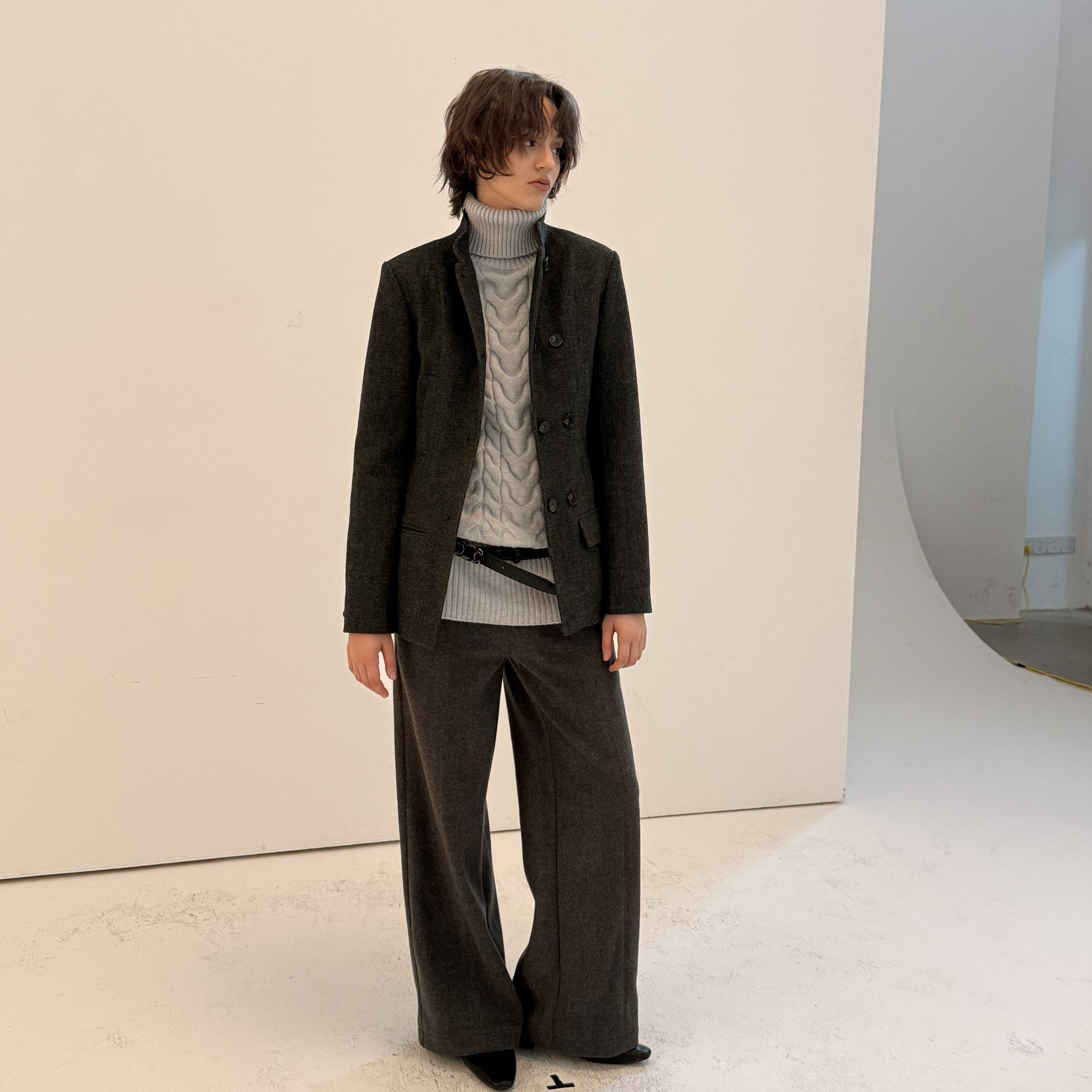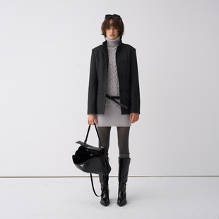 达佳诗灰色毛呢西装 短外套女小个子秋冬加厚教资面试穿搭教师套装