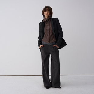 V37英伦风高街棕色毛呢西装 外套男秋韩系宽松高级感痞帅翻领西服