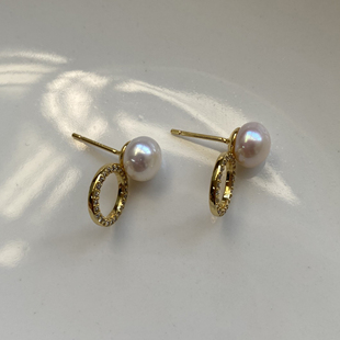京润珍珠云逸淡水有核珍珠耳钉10 11mm圆形大颗珍珠耳饰生日礼物P