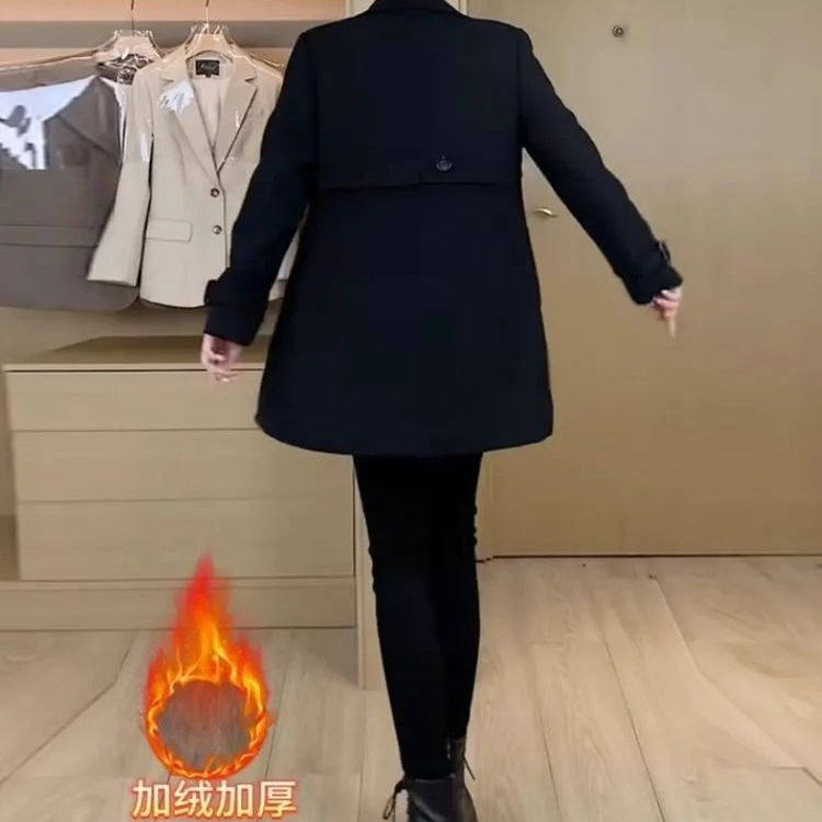 加绒加厚中长款 小个子双排扣气质百搭保暖大衣 风衣外套女秋冬新款