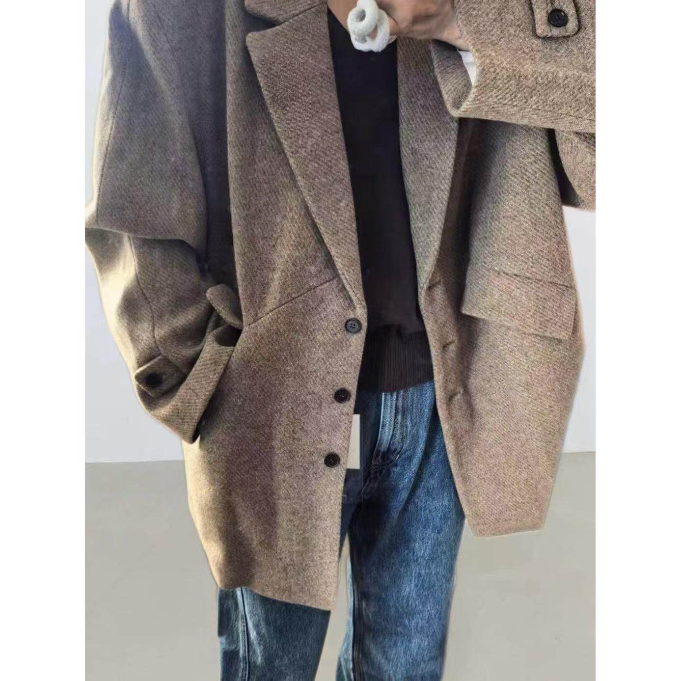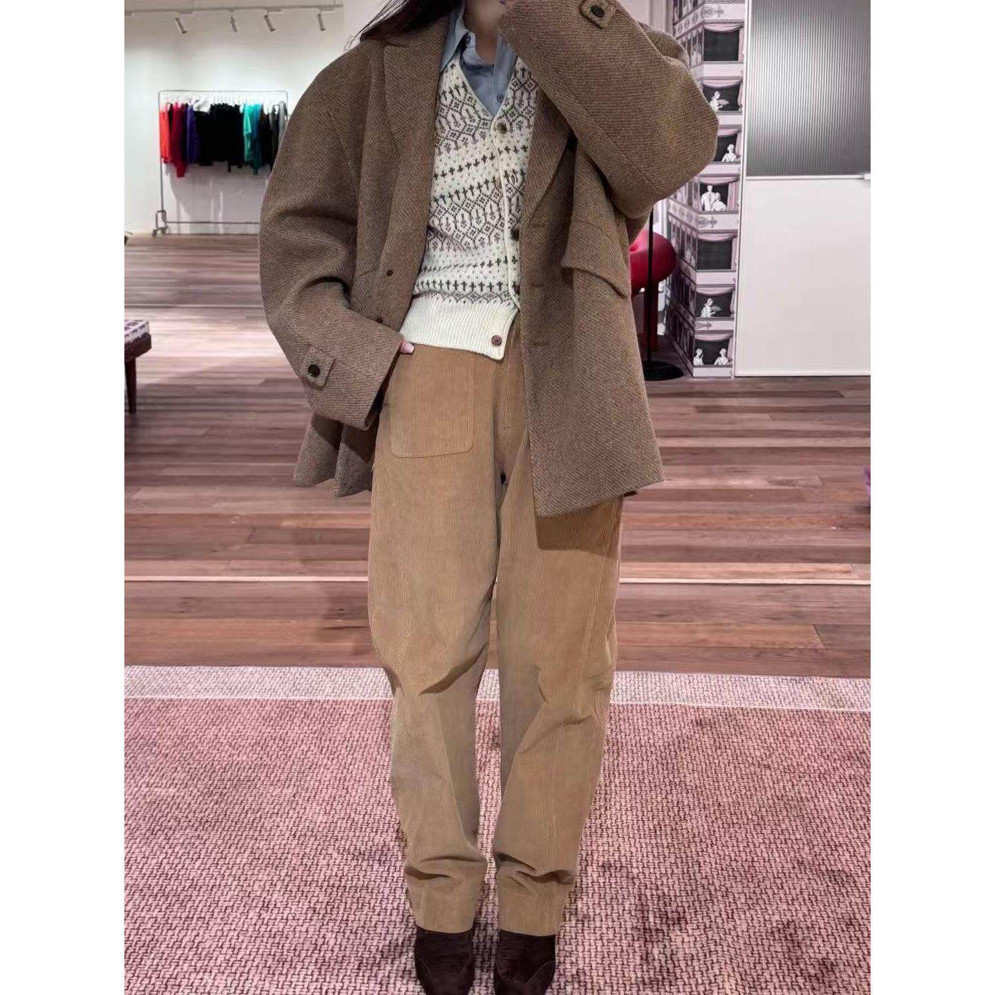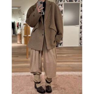 现货 韩国设计师通勤羊毛西装 GROVE 新款 毛呢大衣外套 EDGE冬季