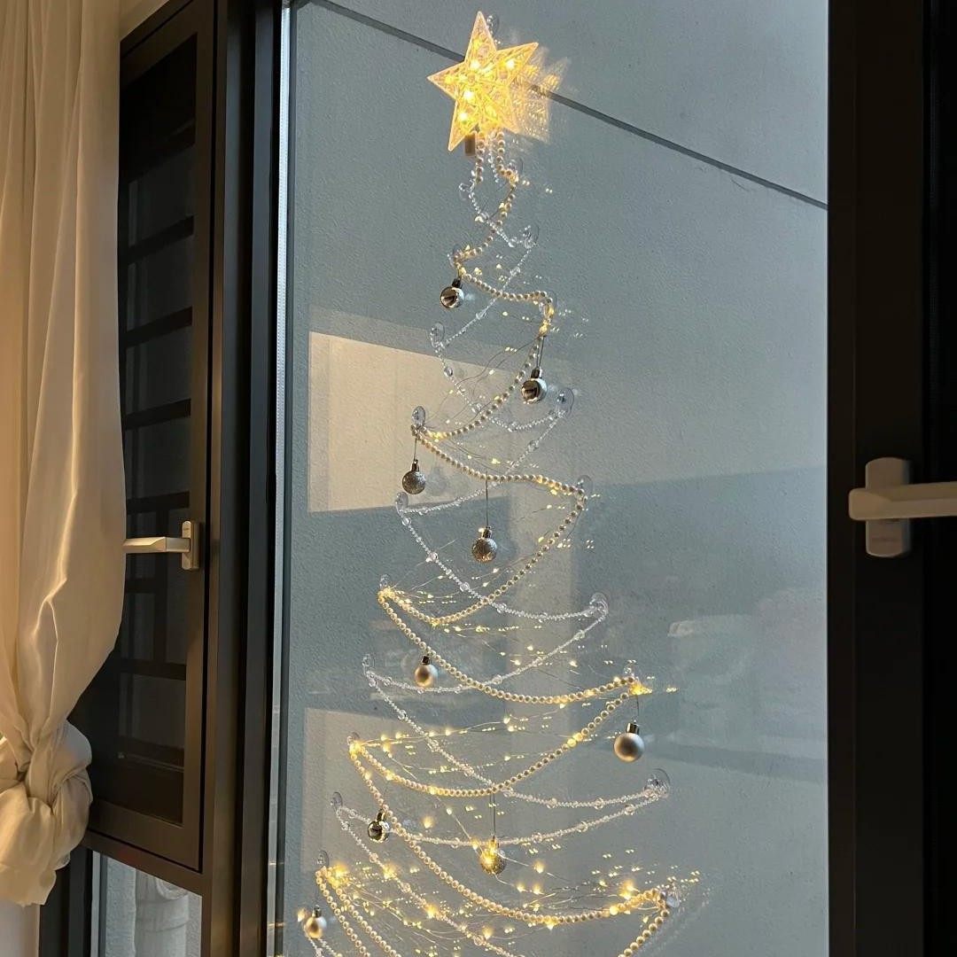 圣诞节客厅落地窗diy圣诞树挂件道具圣诞节氛围场景布置圣诞树