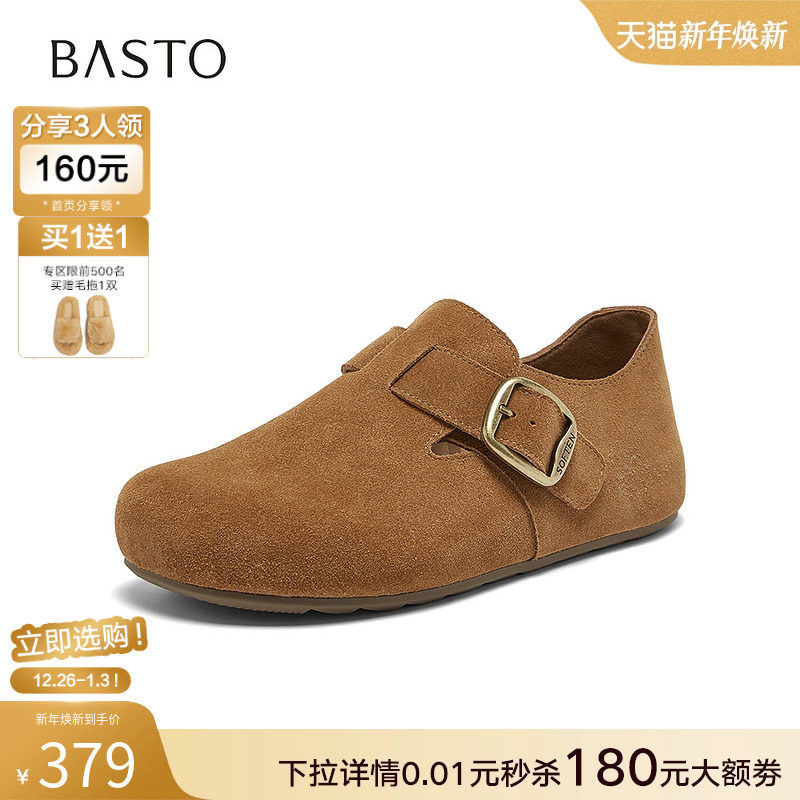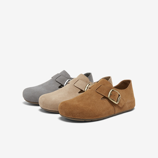 懒人一脚蹬女单鞋 复古真皮勃肯鞋 T1178AM6 商场新款 百思图2026春季