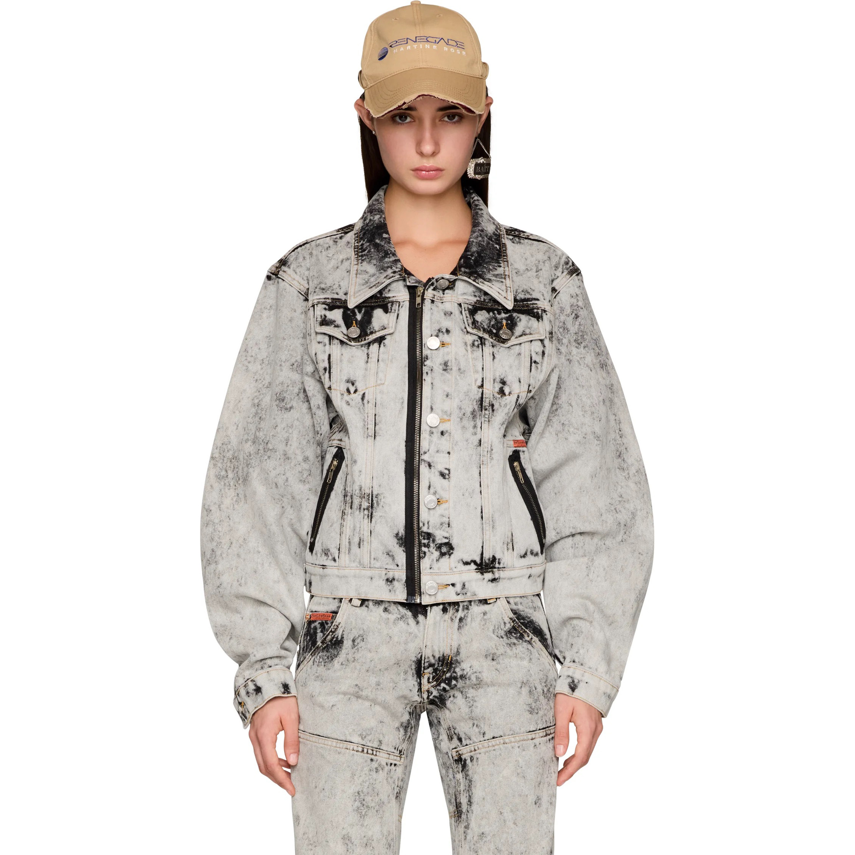 裤 CulturE小众复古做旧牛仔套装 夹克外套废土重磅拉链大口袋工装