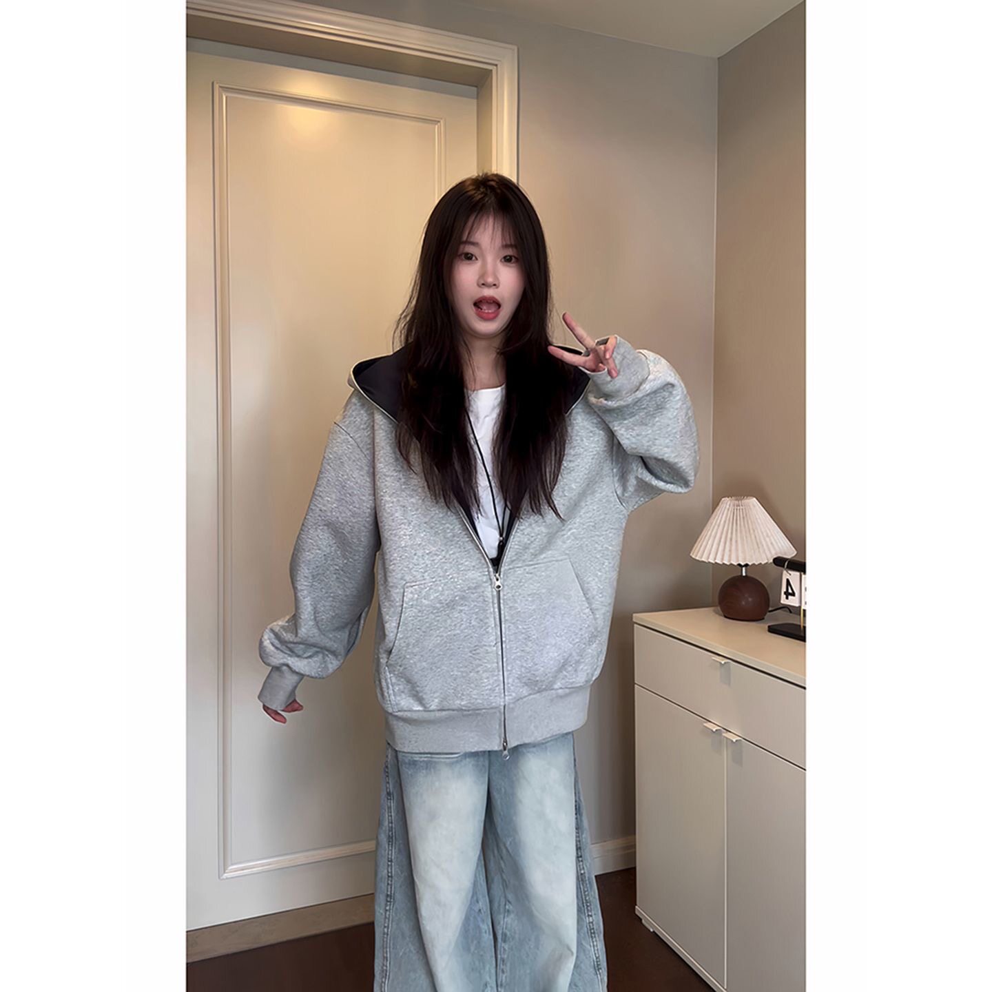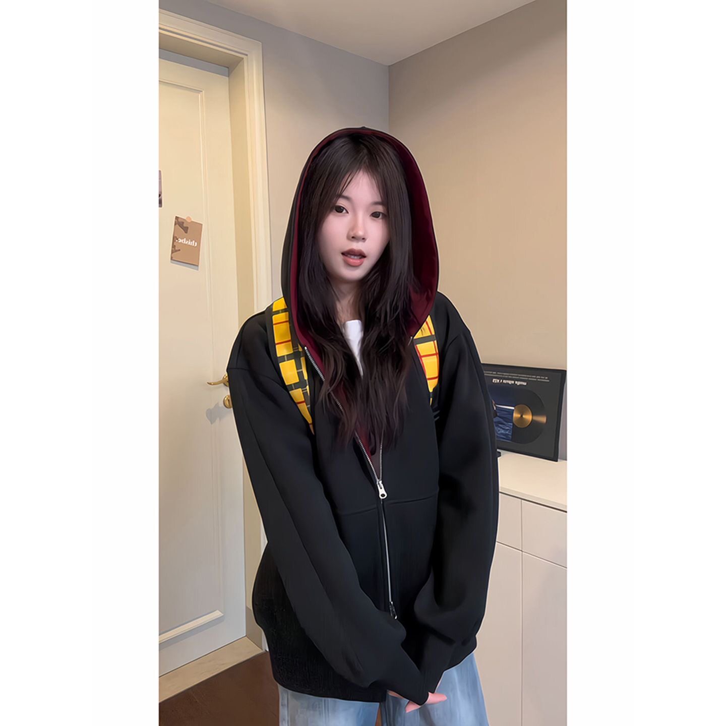 隐藏多口袋加绒加厚450克重磅撞色硬挺卫衣男款 外套 秋冬连帽开衫