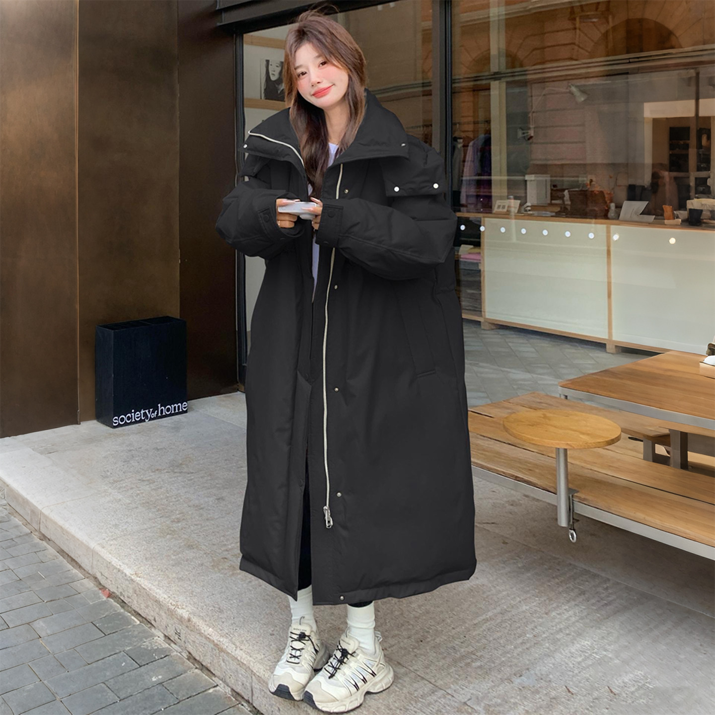 棉服服女连帽收腰显瘦胖mm保暖棉衣外套 慵懒风长款 300斤大码 女装