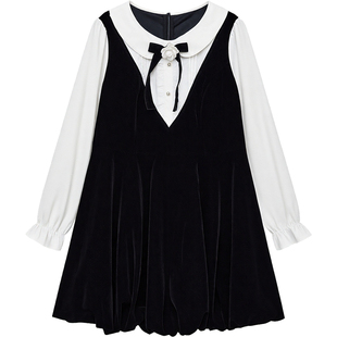 设计感连衣裙 微胖大码 安妮不火复古雪尼尔拼接长裙女2025冬季 新款