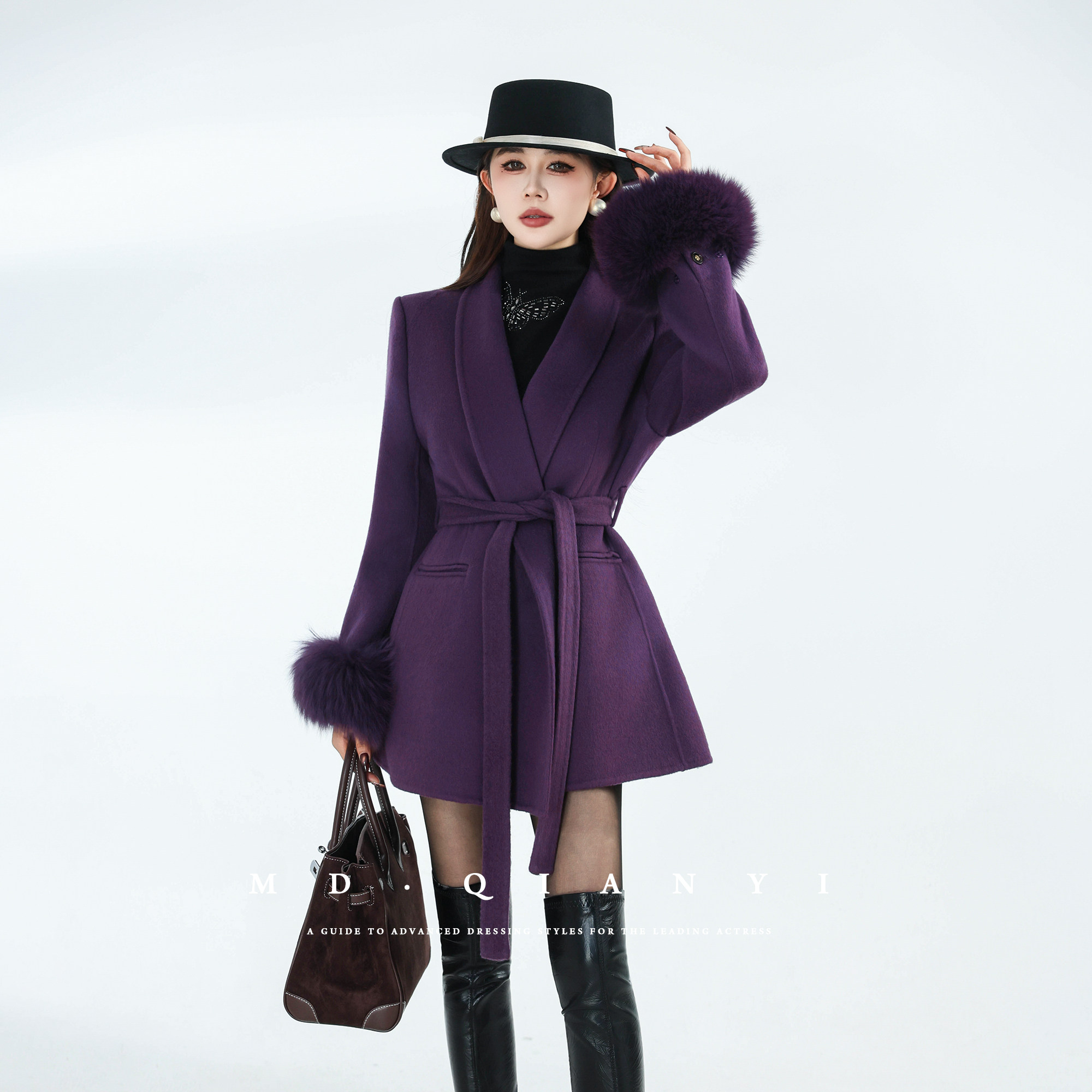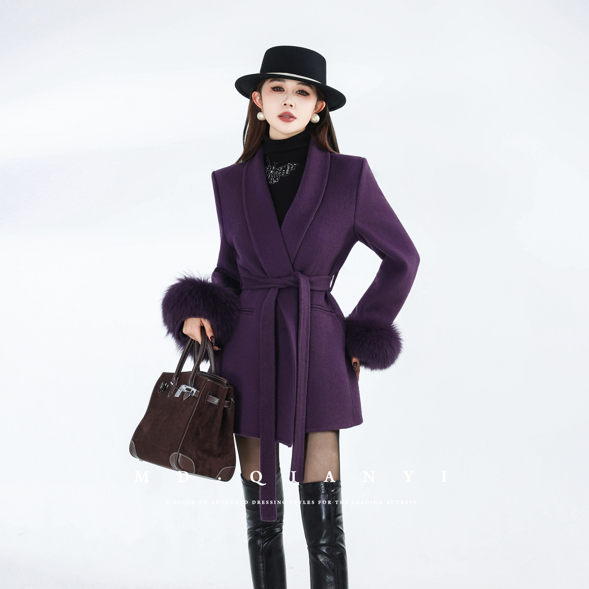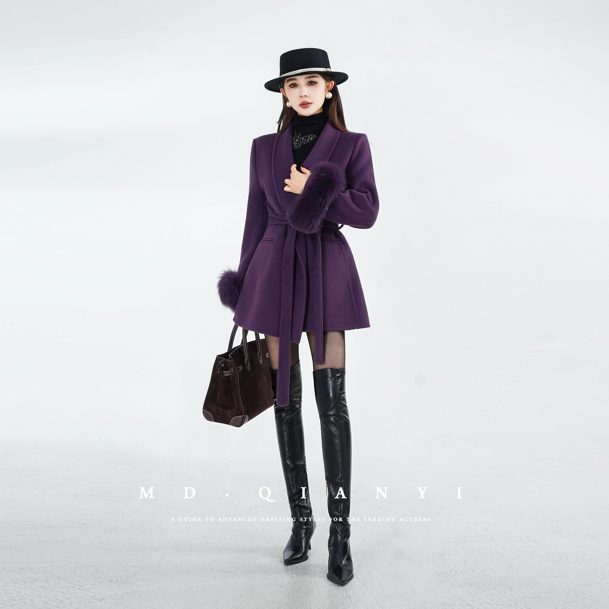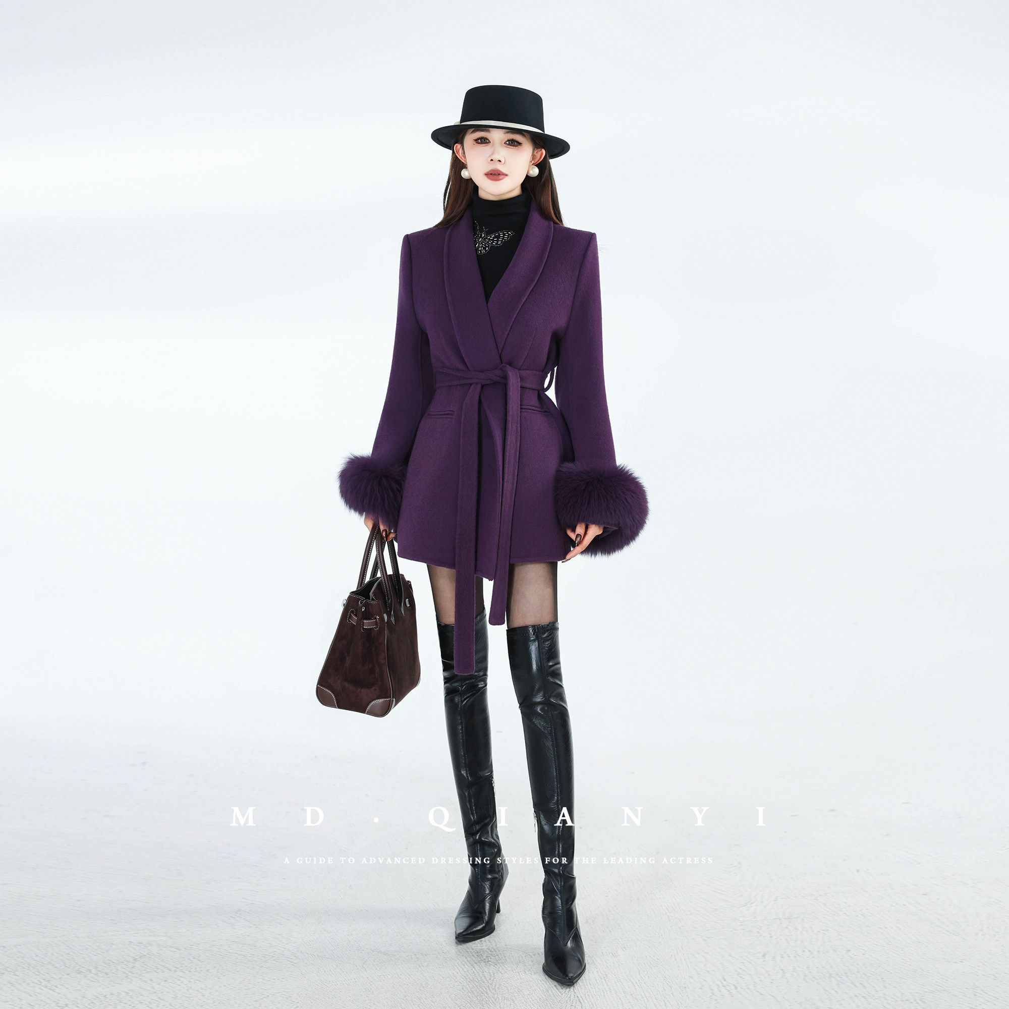 大衣 甜水仙 毛领毛袖 羊毛毛呢外套 羊毛绒大衣 石原里美大衣