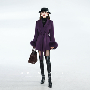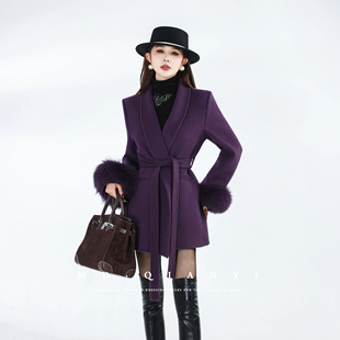 悦戎秘鲁进口苏力羊驼毛大衣女中长款 2025秋冬皮草感羊毛呢外套