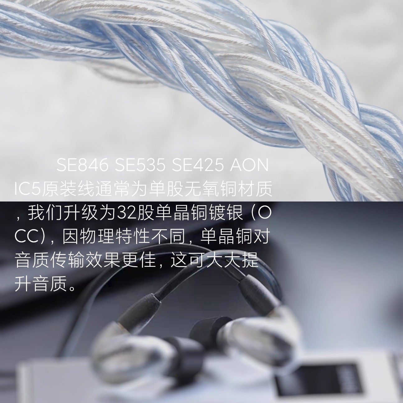 MMCX 适用舒尔SE215 535 425 4.4平衡单晶铜镀银耳机升级线 315
