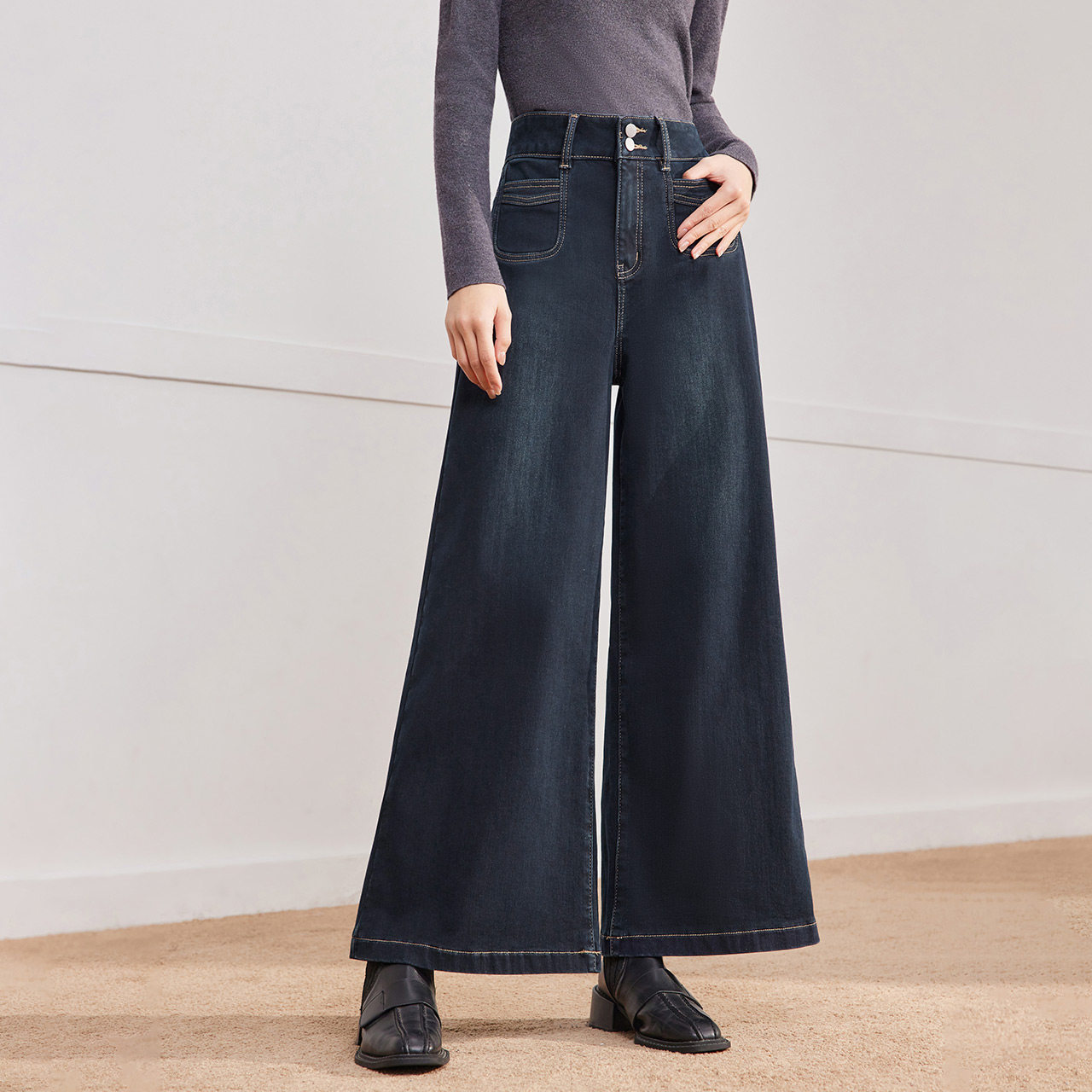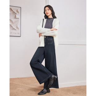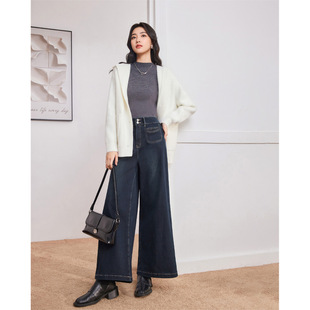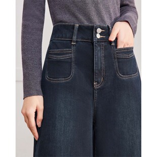 新款 子2025冬季 韩版 时尚 IEF 通勤显瘦加绒百搭牛仔阔腿裤 爱依服裤