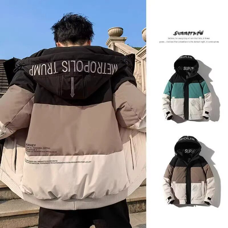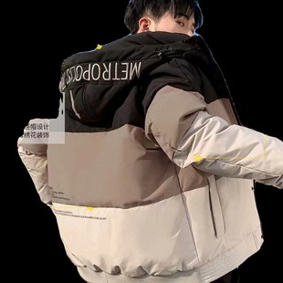 拼色连帽外套男装 羽绒服男士 潮牌保暖冬装 冬季 白鸭绒加厚防寒新款
