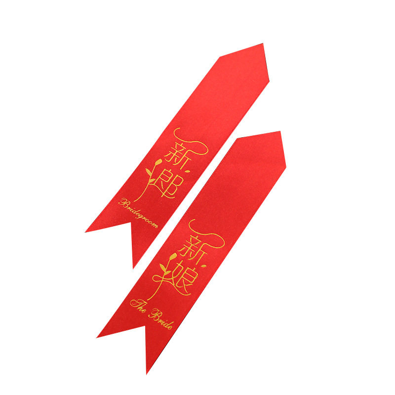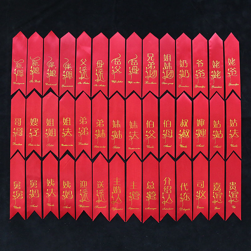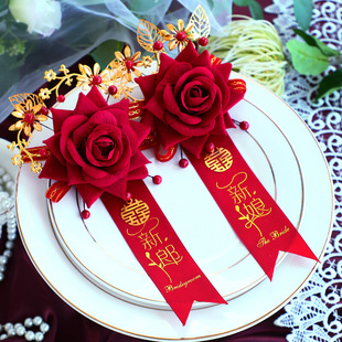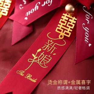 酒红胸花婚纱条称谓胸条婚礼大全结婚用品批发丝带胸针喜字