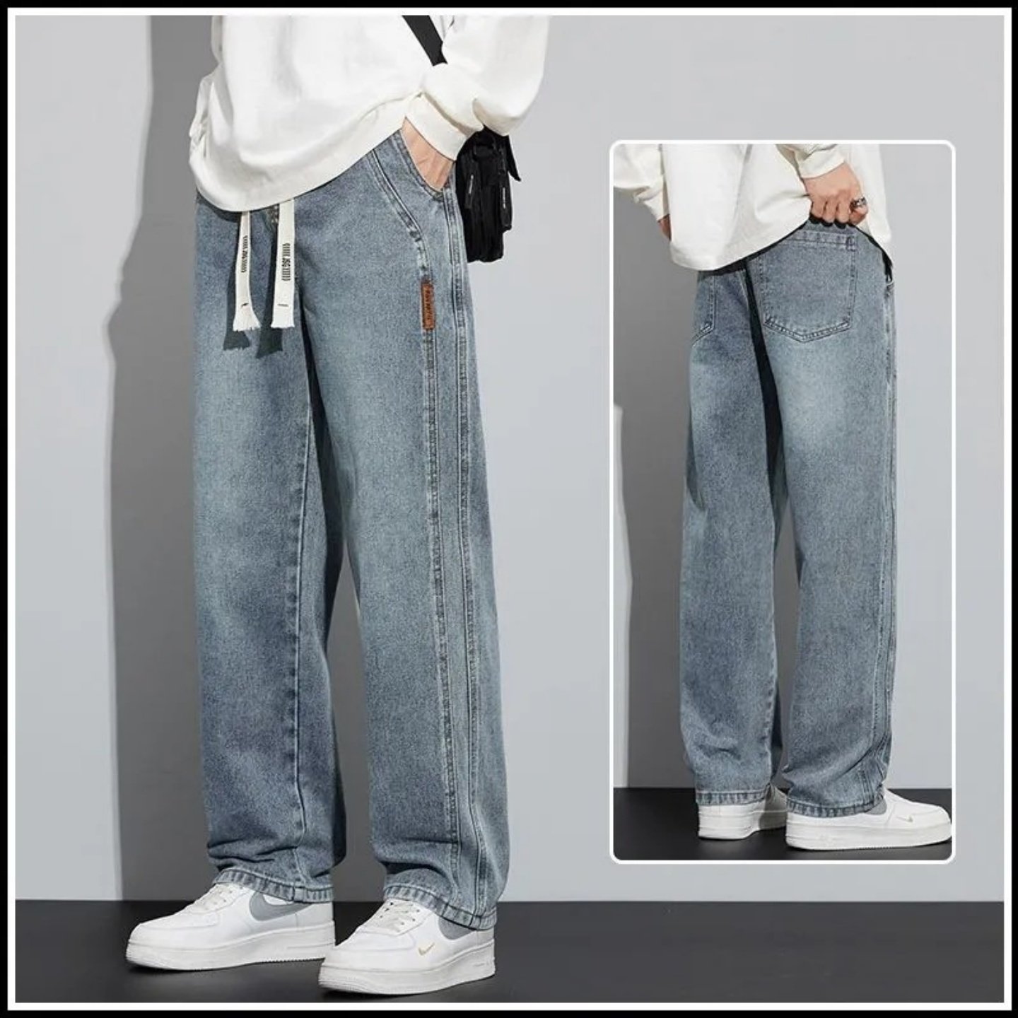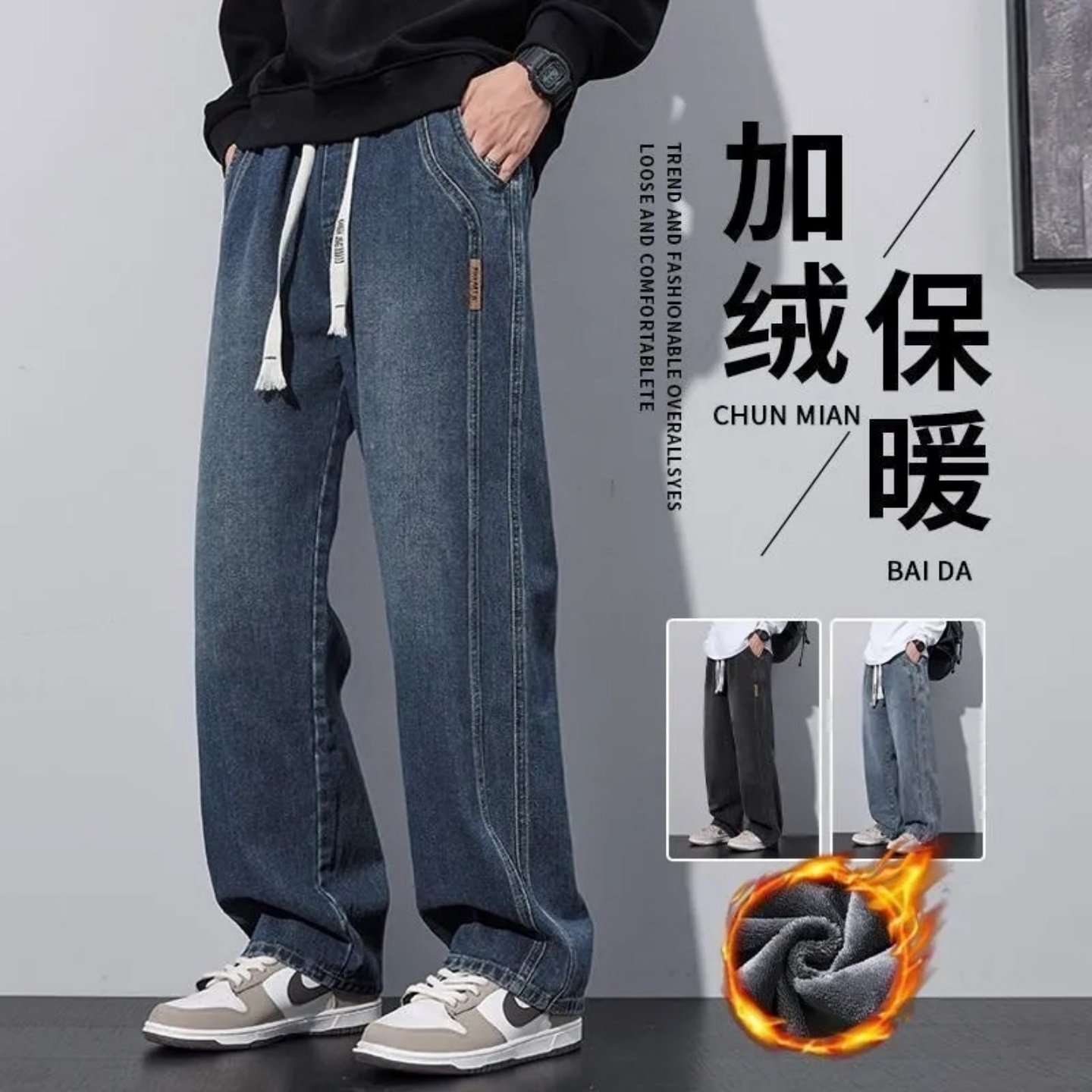 美式 复古宽松大码 冬季 阔腿牛仔裤 休闲直筒裤 春秋新款 厚款 子男 男士