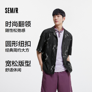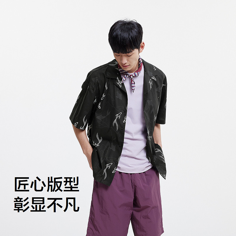 度假风松弛2025夏新款 男国风锦鲤满印情侣装 上衣垂感 衬衫 森马短袖