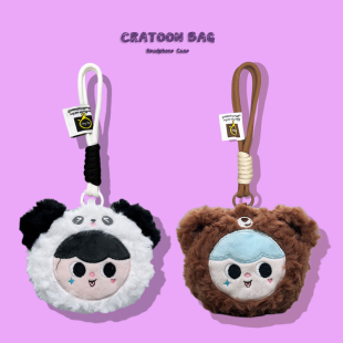 毛绒金运i7可爱卡通A9新款 AI蓝牙耳机保护壳A30一体式 收纳包耳机壳 娃娃适用于金运A5蓝牙耳机套A6耳夹式 变装