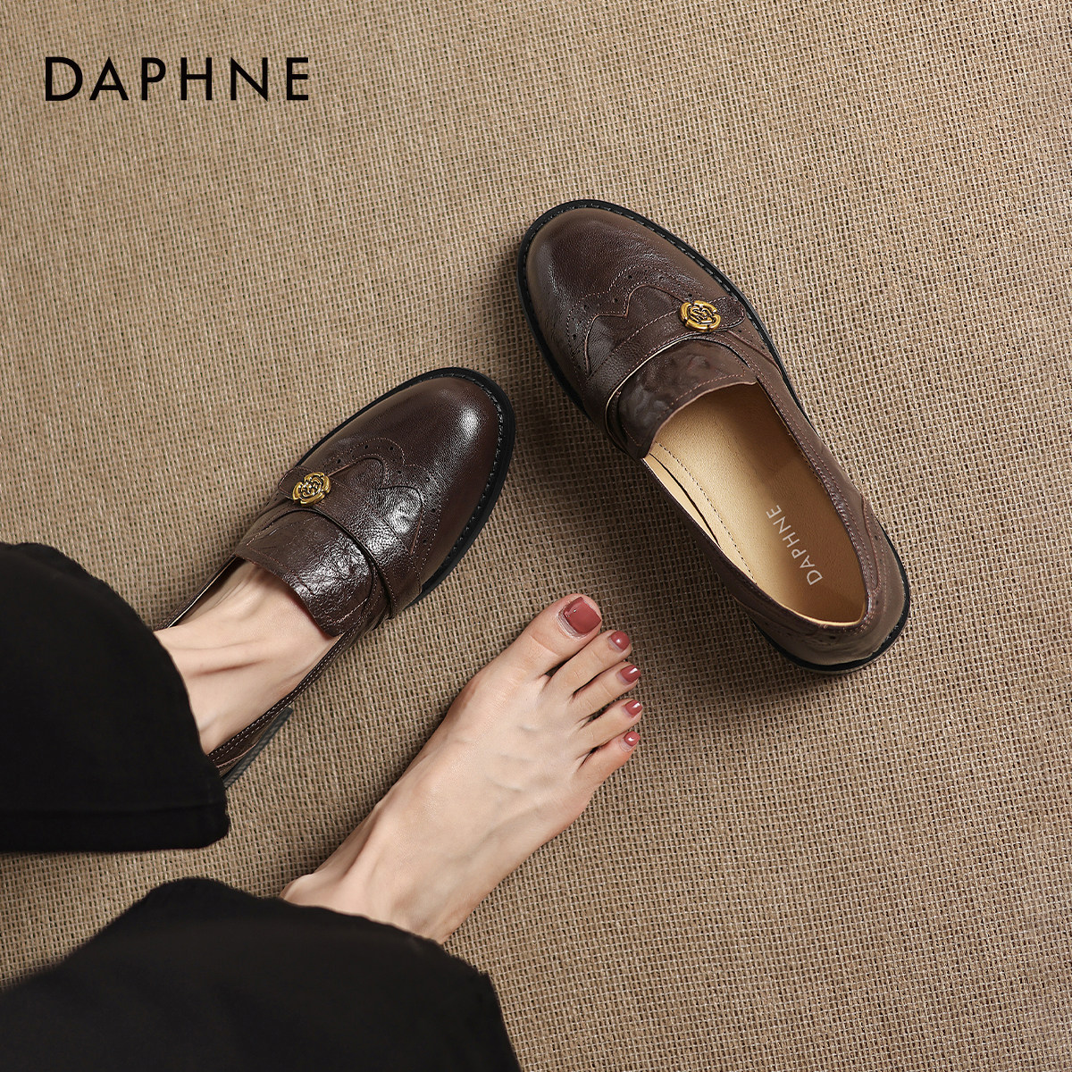 山茶花布洛克通勤单鞋 达芙妮羊皮乐福鞋 英伦小皮鞋 春季 女2026新款