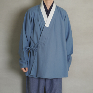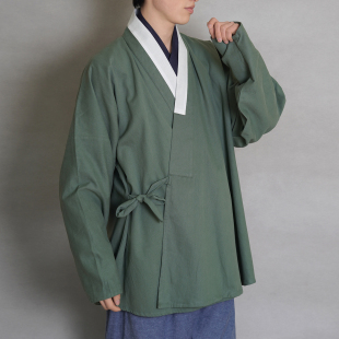 短衫 纯棉素色明制对穿交弓袋袖 春秋日常国风男女 离离 青山渐汉服