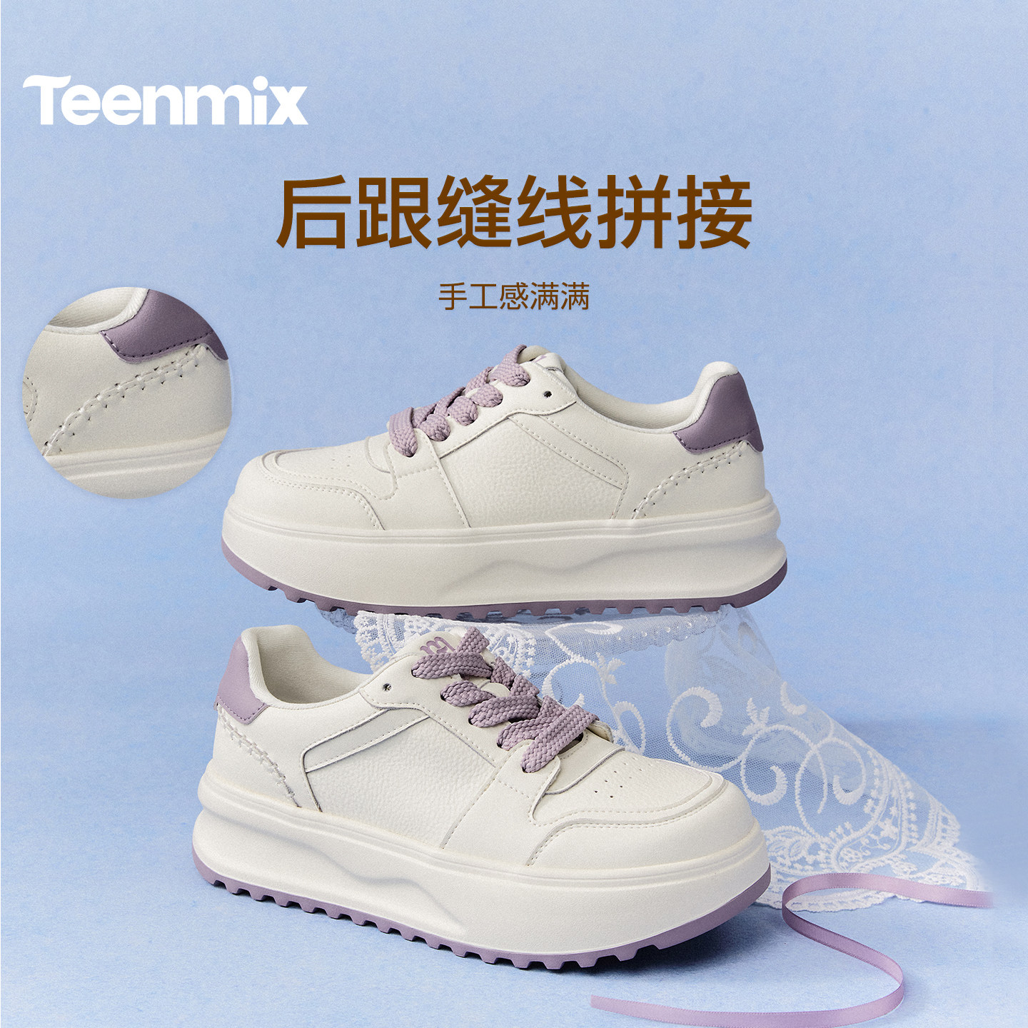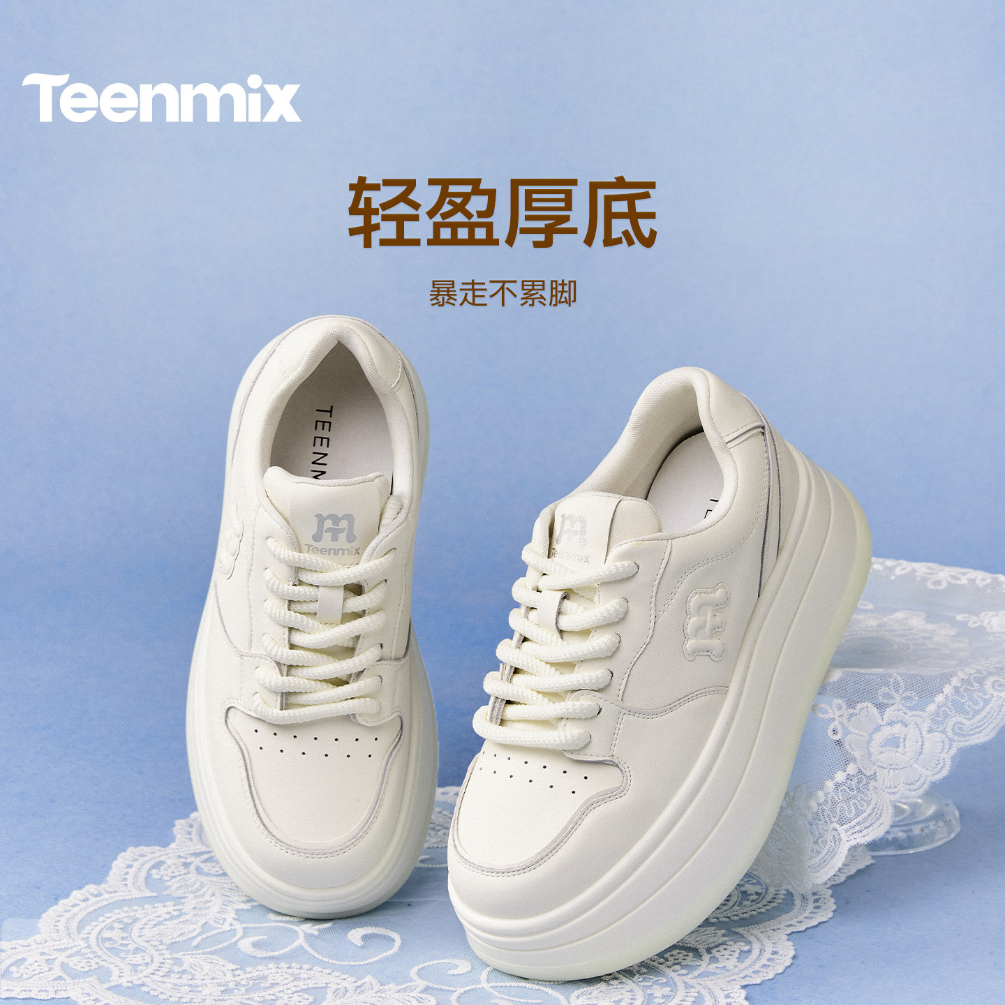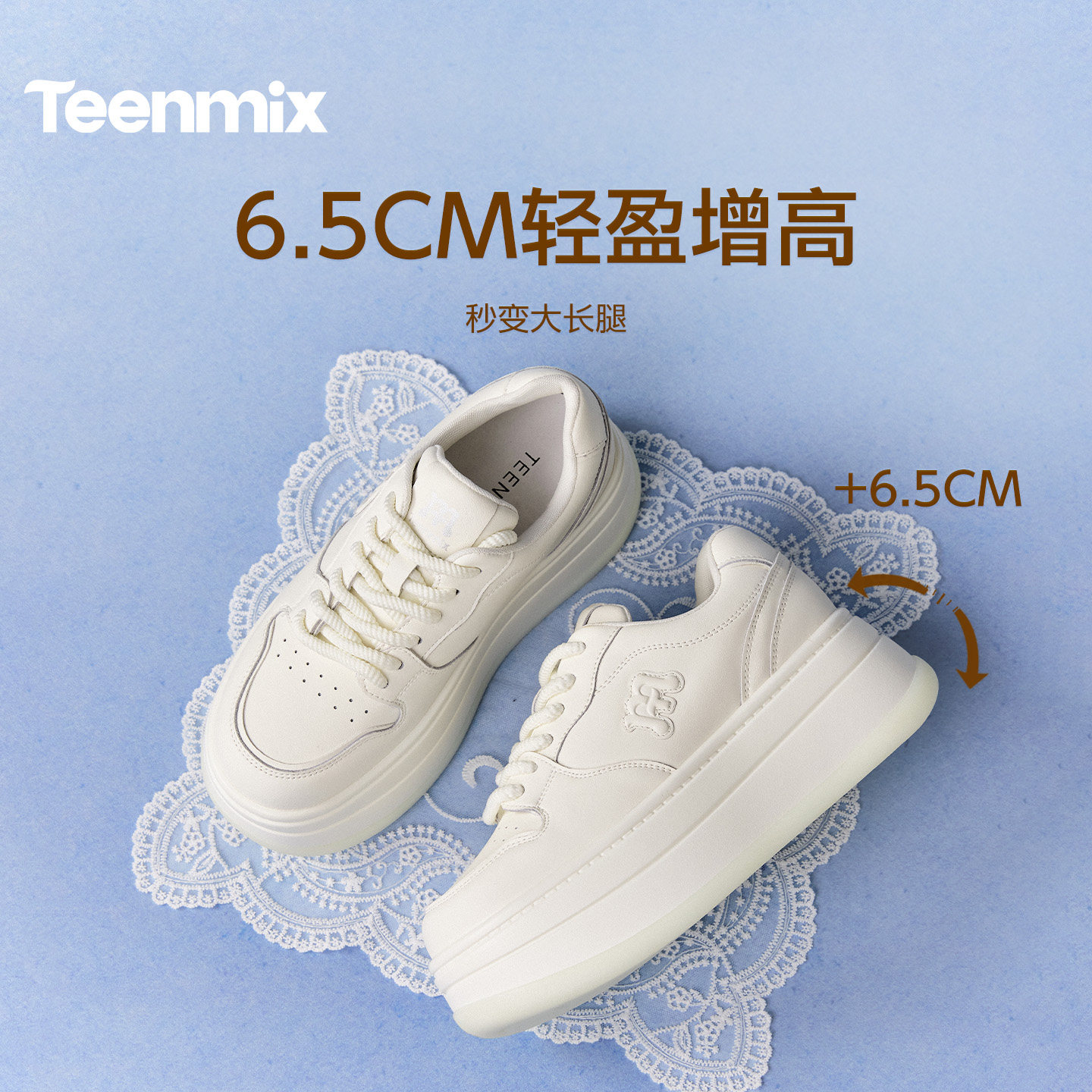 松糕板鞋 天美意白月光厚底小白鞋 女春运动休闲鞋 李佳琦直播间