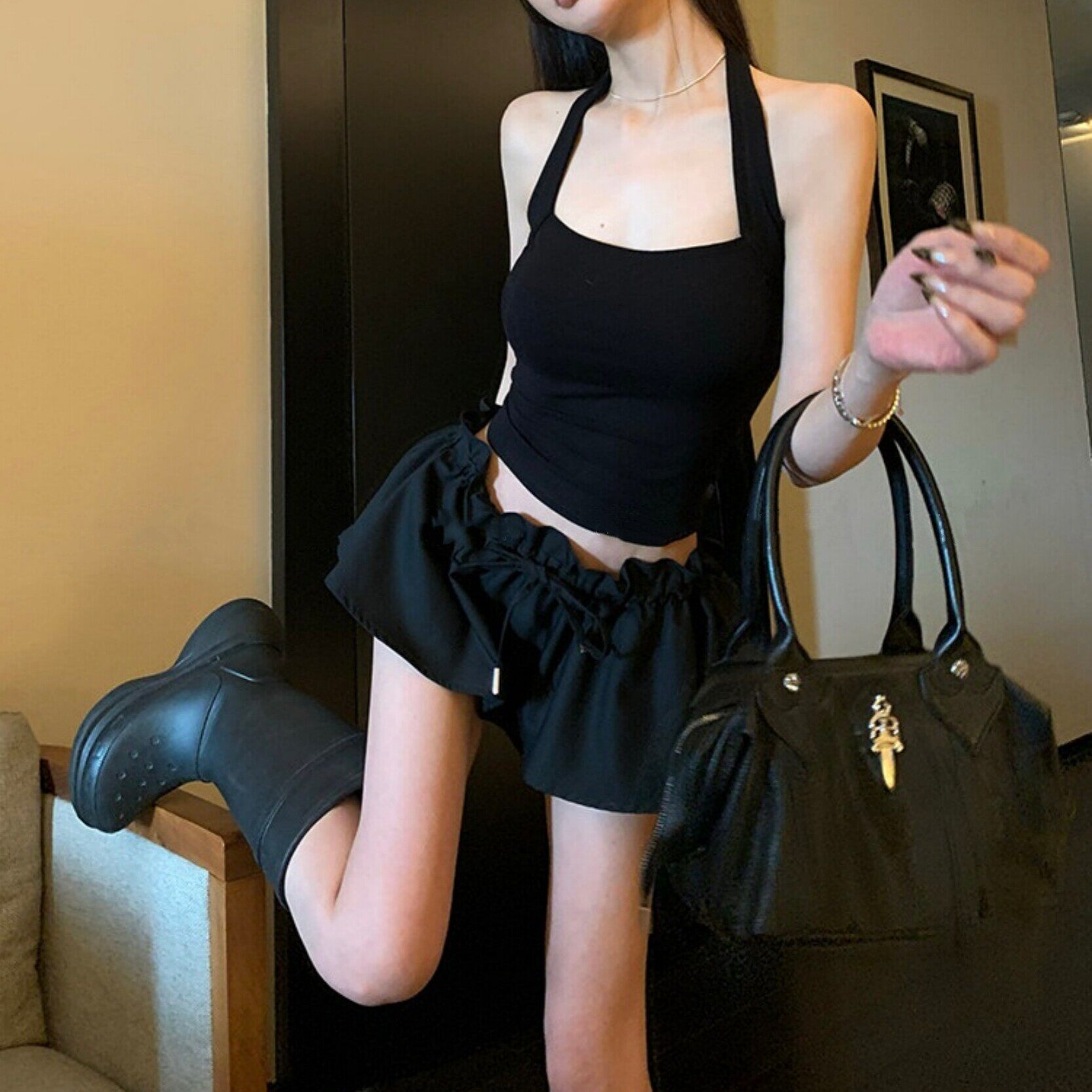 商品标签:法式休闲a字短裙