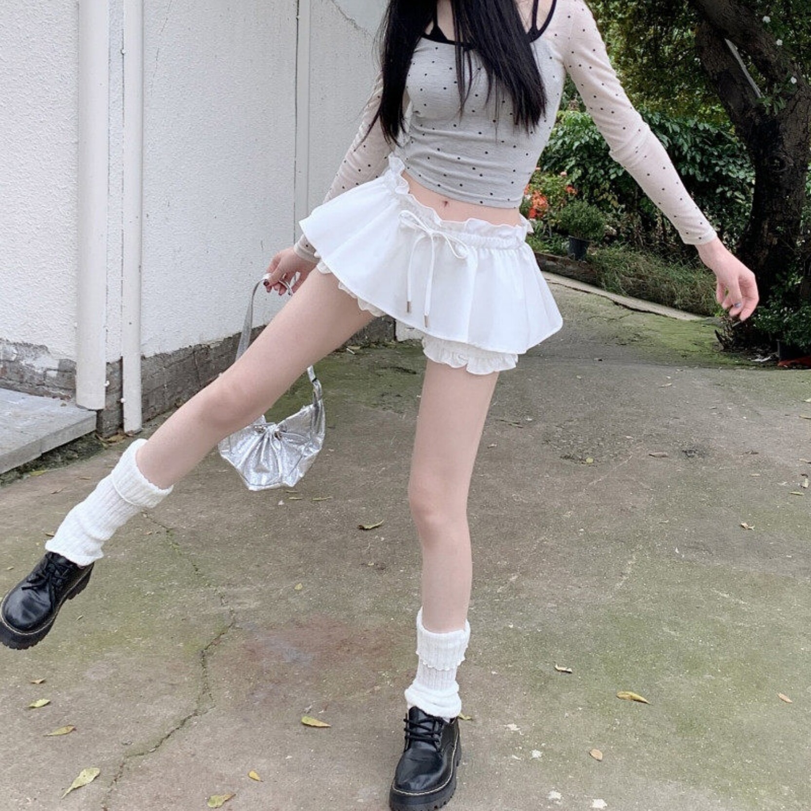 休闲a字短裙 打底内搭白色裙裤 法式 芭蕾风蓬蓬蛋糕半身裙女春秋季