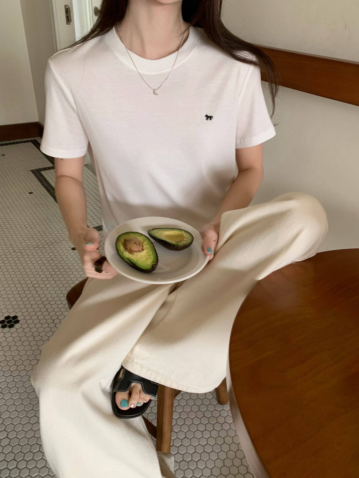 圆领半袖 2026春夏季 T恤打底衫 闰熙runxi5264刺绣小马天丝羊毛短袖
