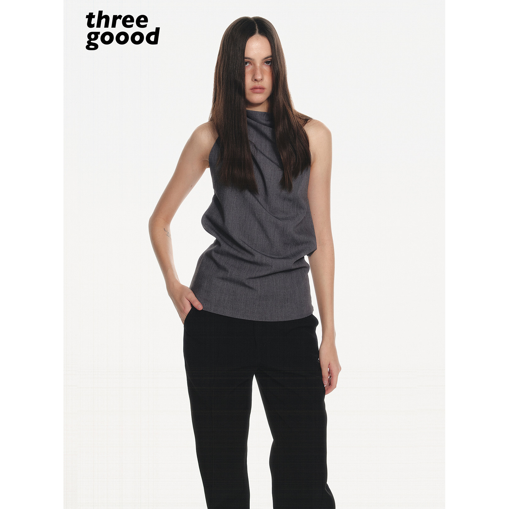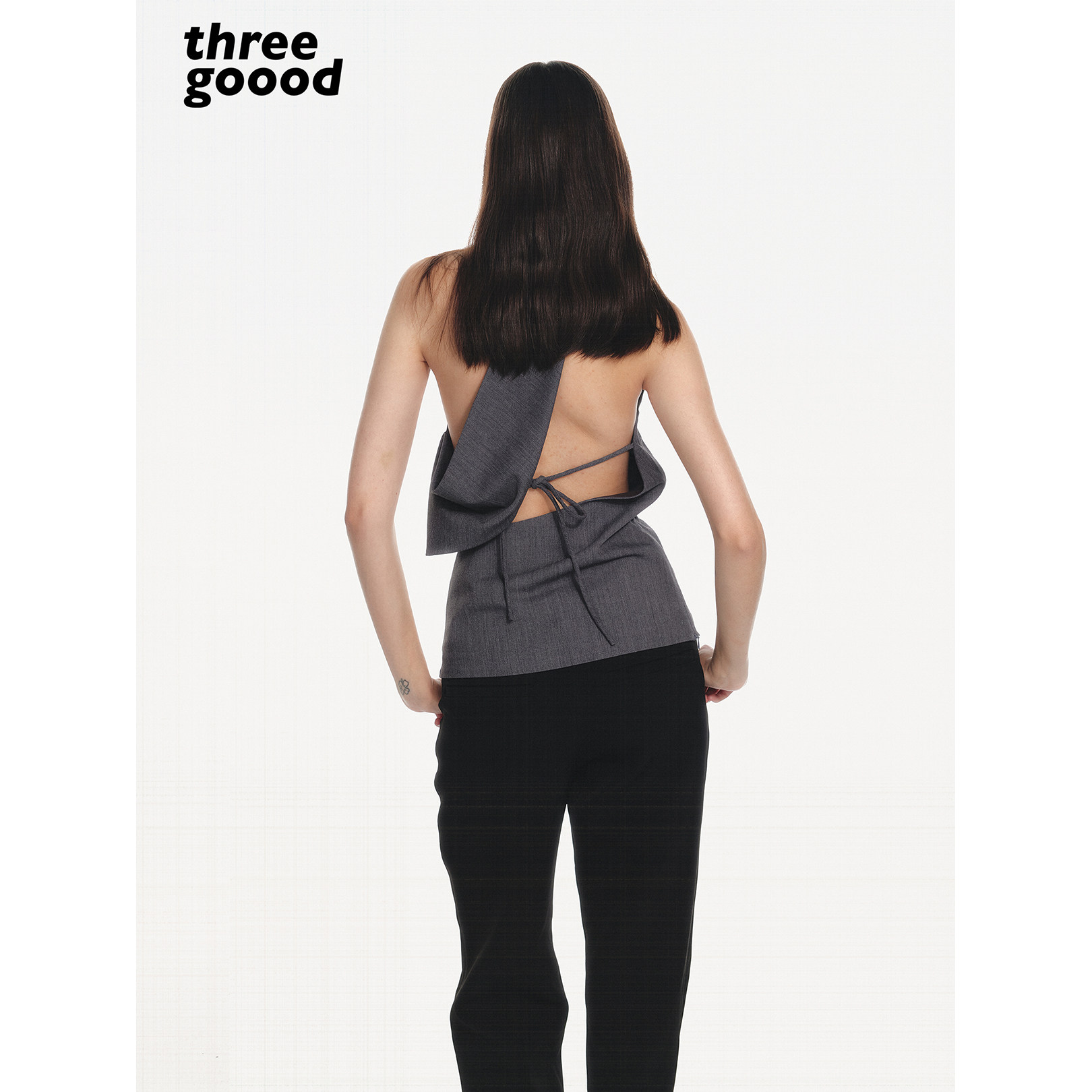 小高领大露背设计 露肩挂脖背心 性感高级并存 GOOOD殷三吉 THREE