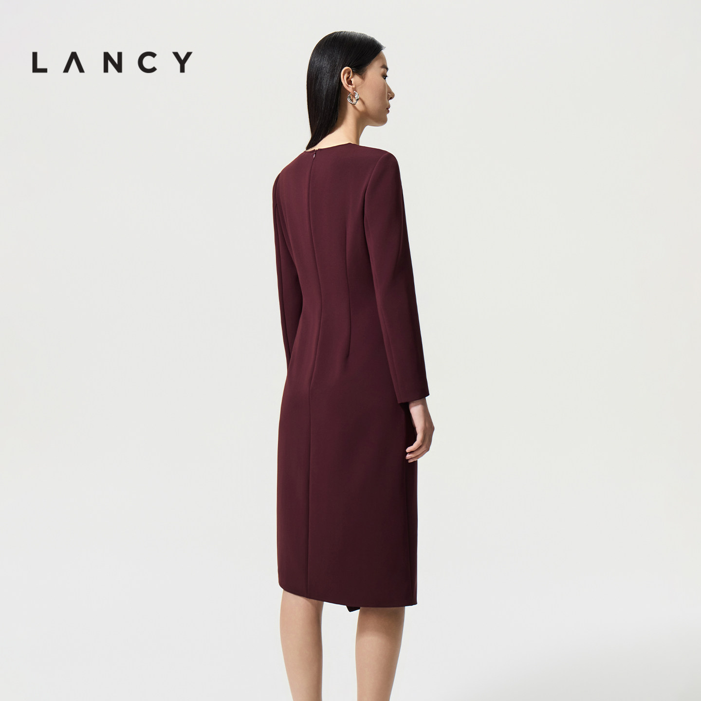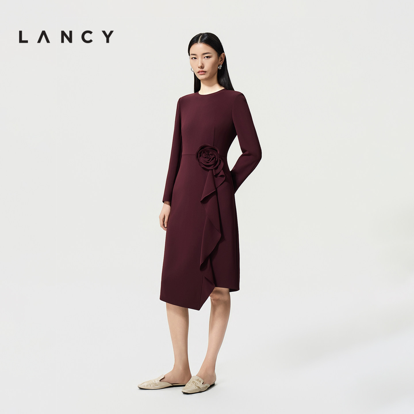 连衣裙气质女神显瘦长袖 LANCY 醋酸法式 新款 收腰裙子女 朗姿26春季