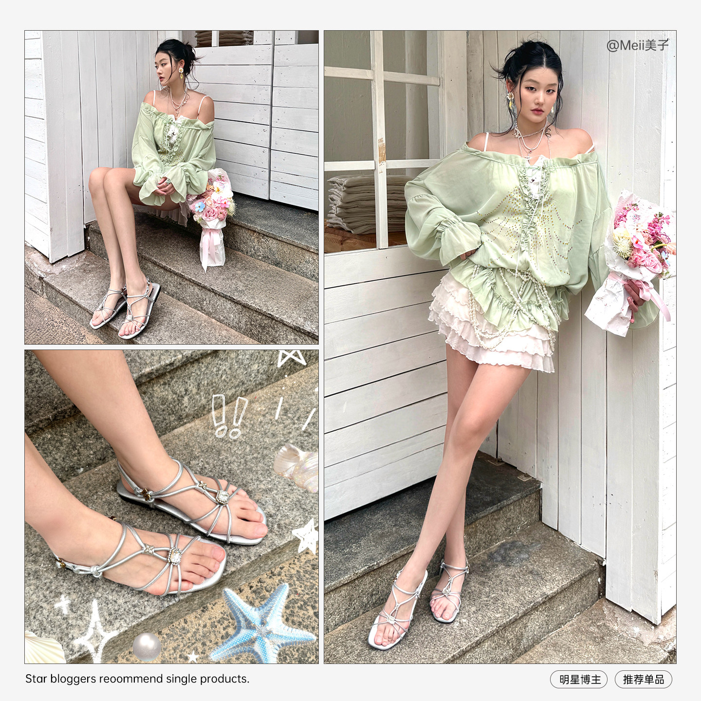 波西米亚度假一脚蹬平底闪钻拖鞋 新款 女 2026夏季 MIO米奥罗马凉鞋