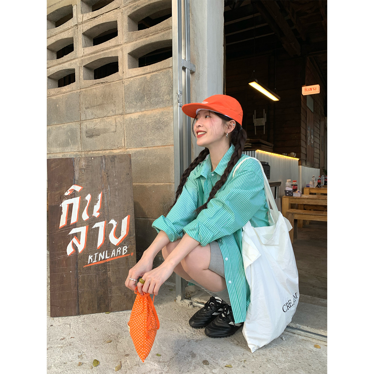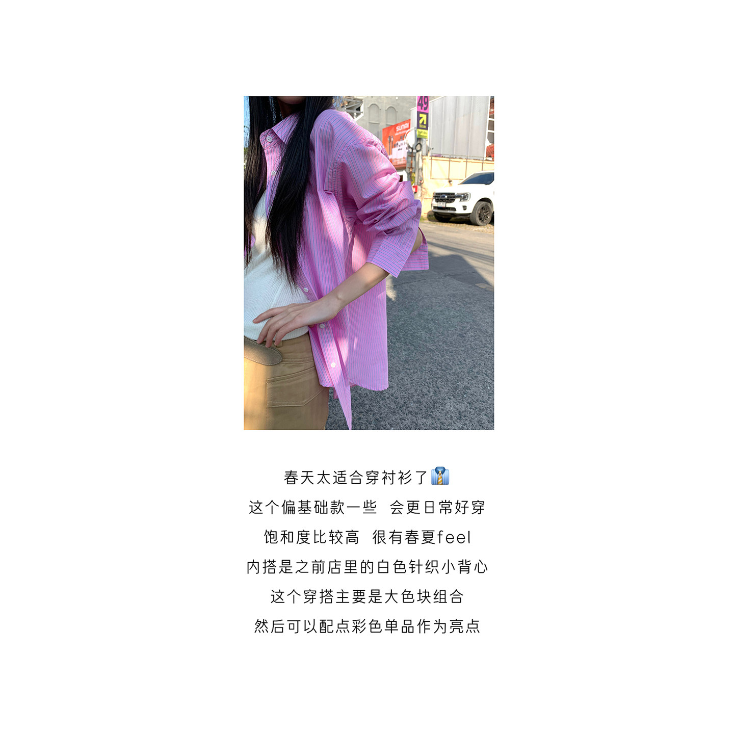 盐系少女衬衣外套 2026春夏新款 CCKOK 简约拼色竖条纹100%棉衬衫