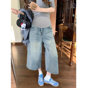 女夏季 七分宽松显瘦阔腿裤 薄款 休闲大码 外穿2026新款 孕妇牛仔短裤