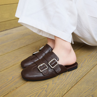 平底韩式 半包半拖勃肯鞋 英伦风一脚蹬包头凉鞋 穆勒女鞋 叶小欧