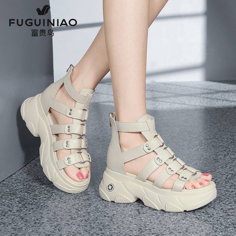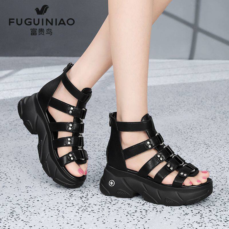 罗马凉鞋 高跟女士凉鞋 松糕底 女真皮厚底软底2026年新款 富贵鸟凉鞋