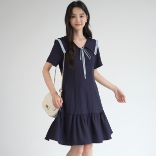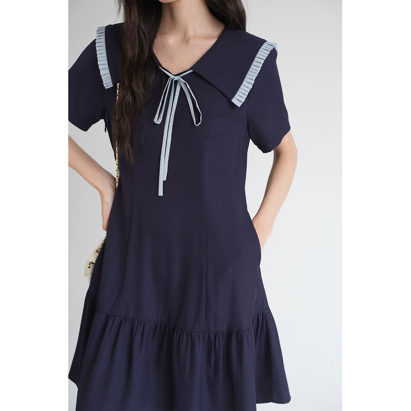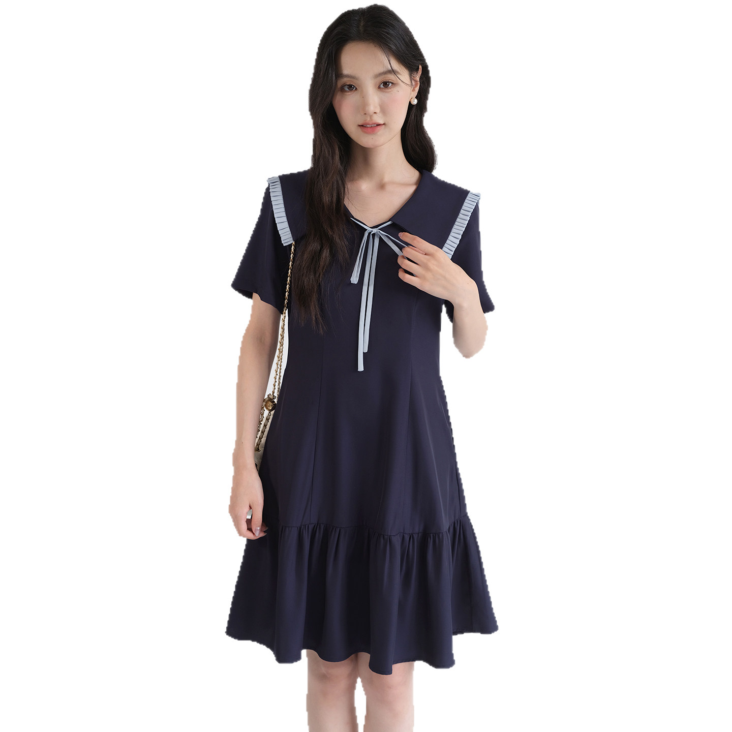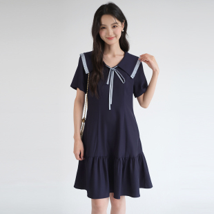 新款 减龄海军领雪纺裙2026夏装 胖MM显瘦遮肉连衣裙 女装 蓝若水大码