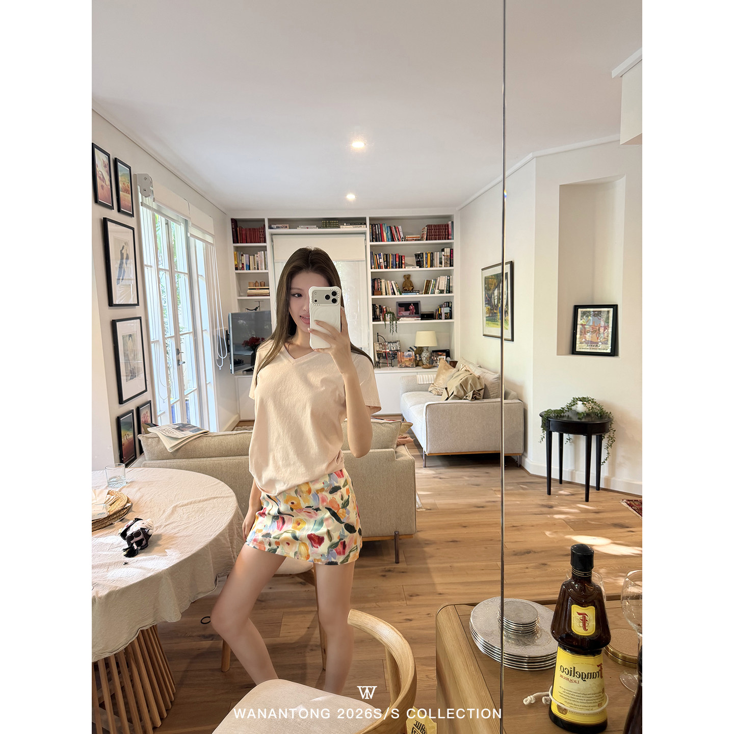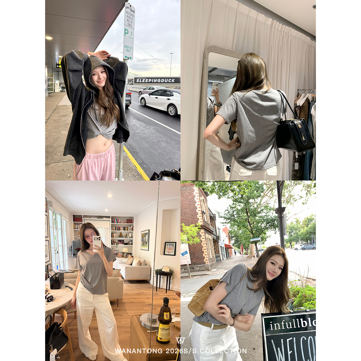 爱穿自留短袖 呼吸感全棉V领正肩T 上衣女春夏 满分T恤 WANANTONG