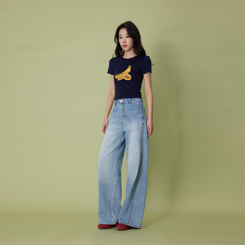 高腰宽松弧形分割牛仔裤 ATUMU春上新 节 AT510 38大促时尚