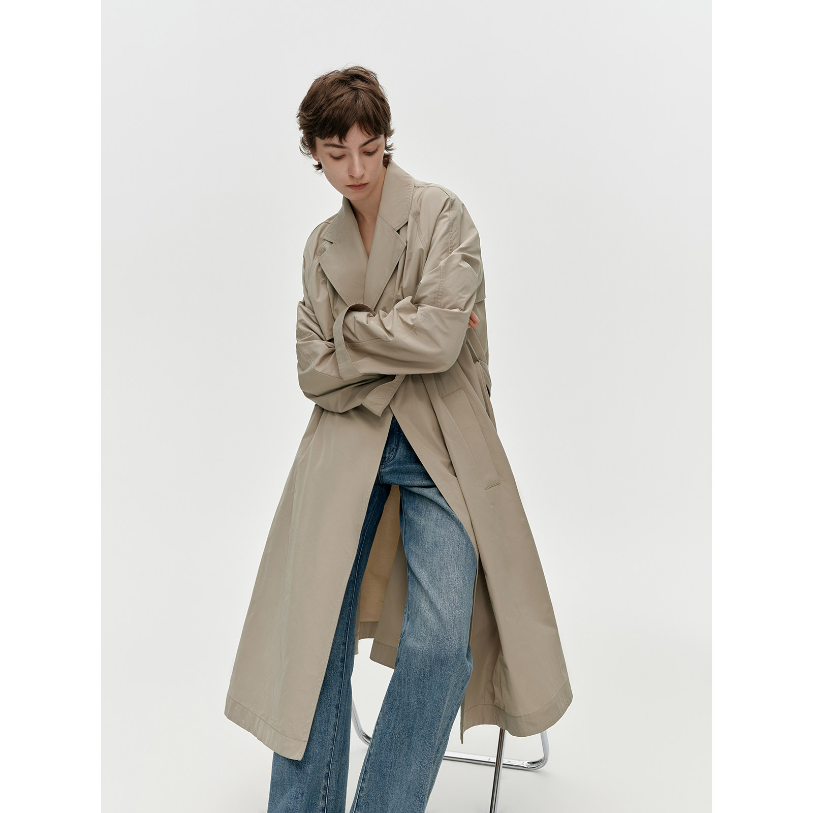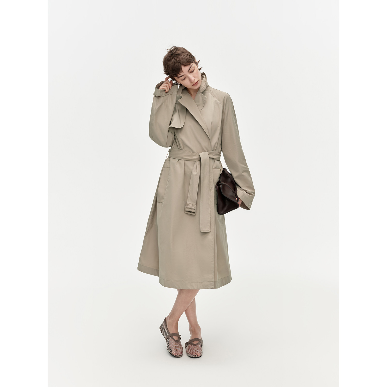 风衣外套 高密平纹系带无扣中长款 华吉言 风语